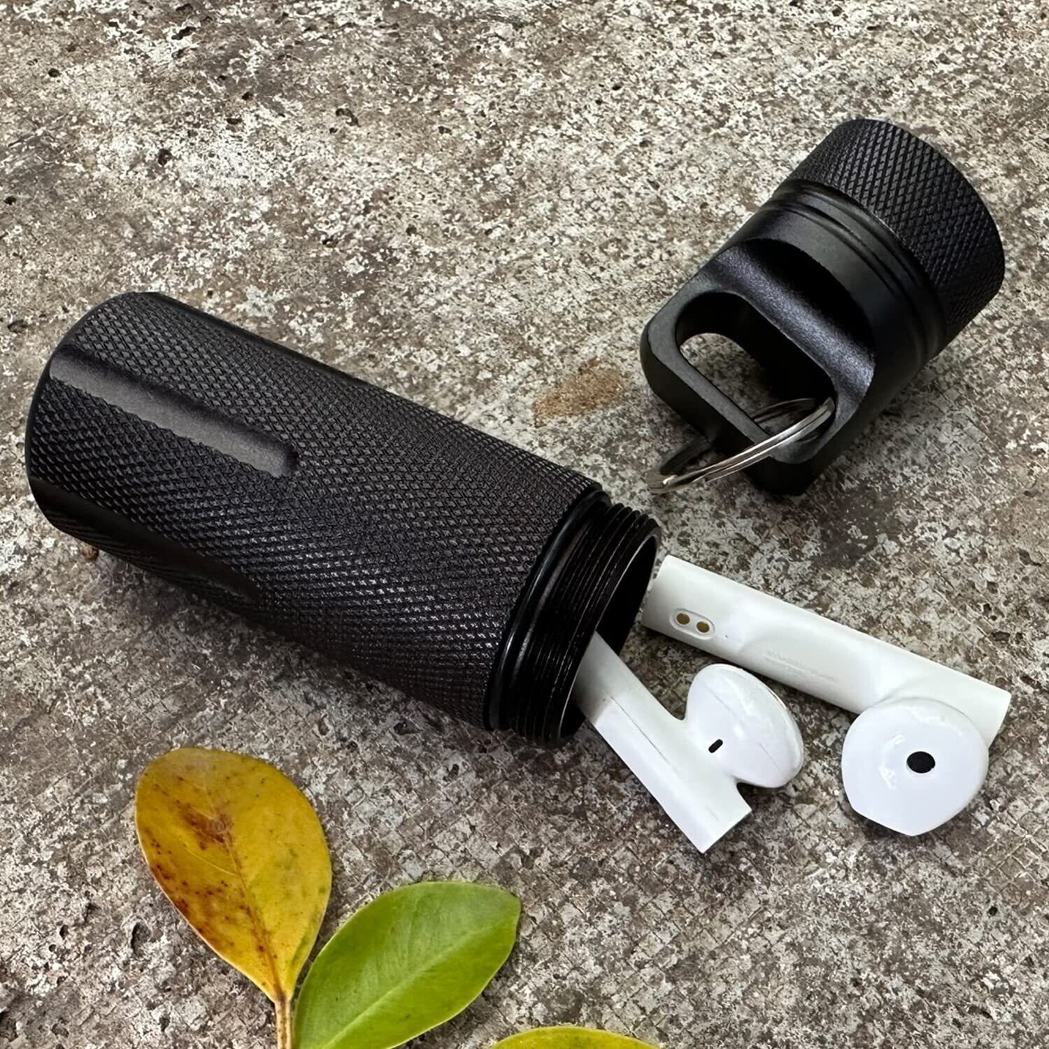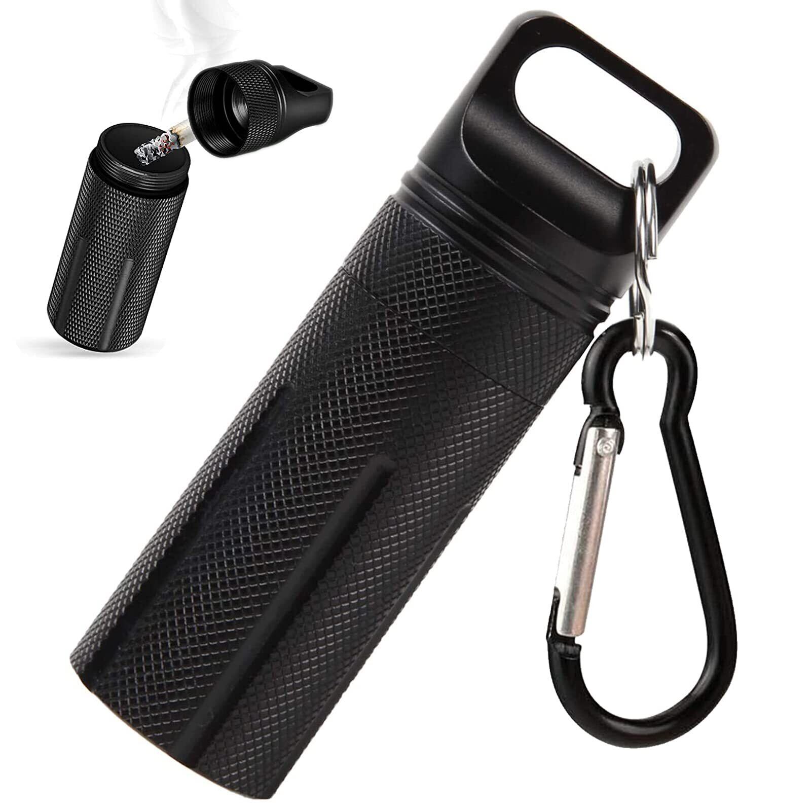 携帯灰皿 完全防水 ピルケース カラビナ付き 耐湿防圧 アルミ 小物いれ 携帯型 (ブラック)