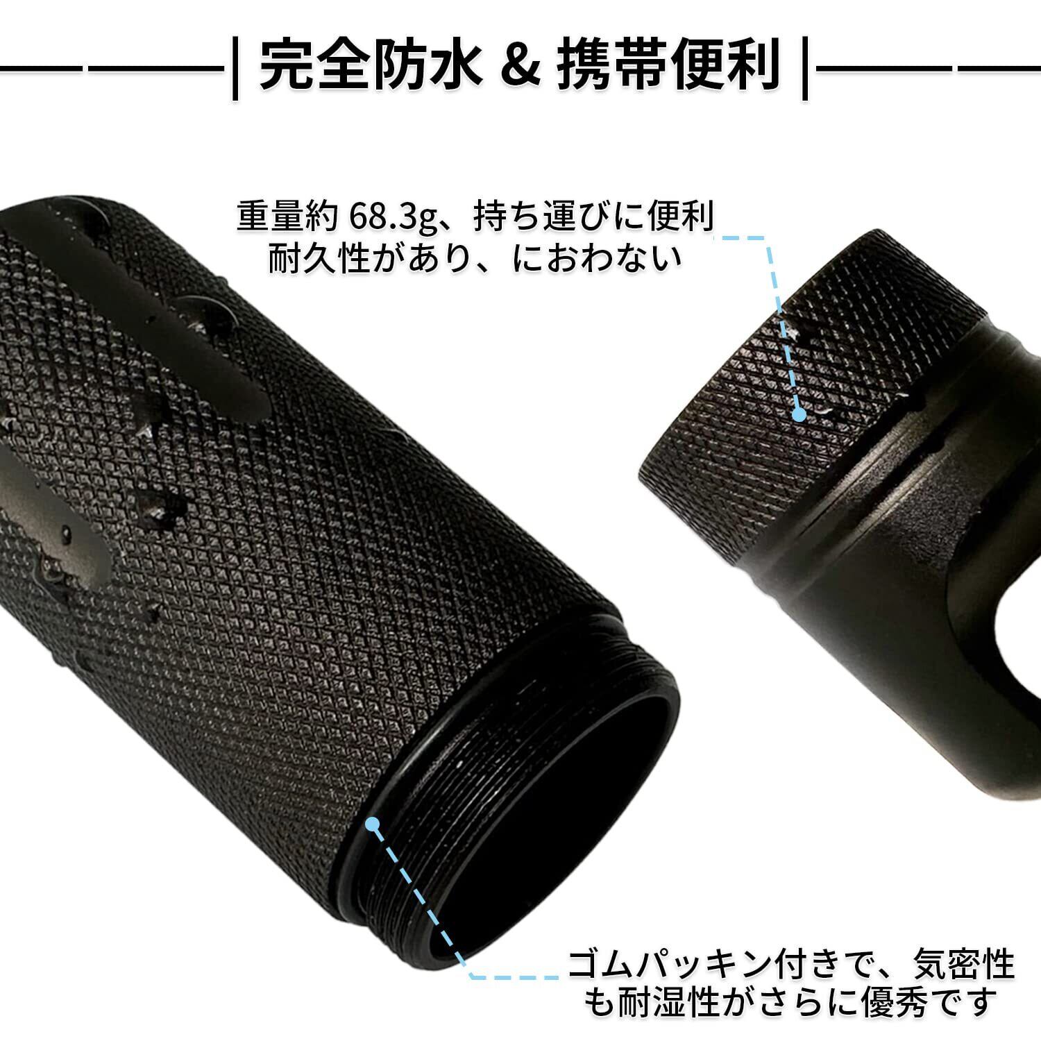 【多機能】 このシリンダー容器は防水性、密閉性が高い、口のところはネジ型なデザインで、水に落ちても、しっかり内部の物を守ってくれ、携帯灰皿としてだけではなく、シガレット、カギ、電池、USBなどの小物を収納できる。