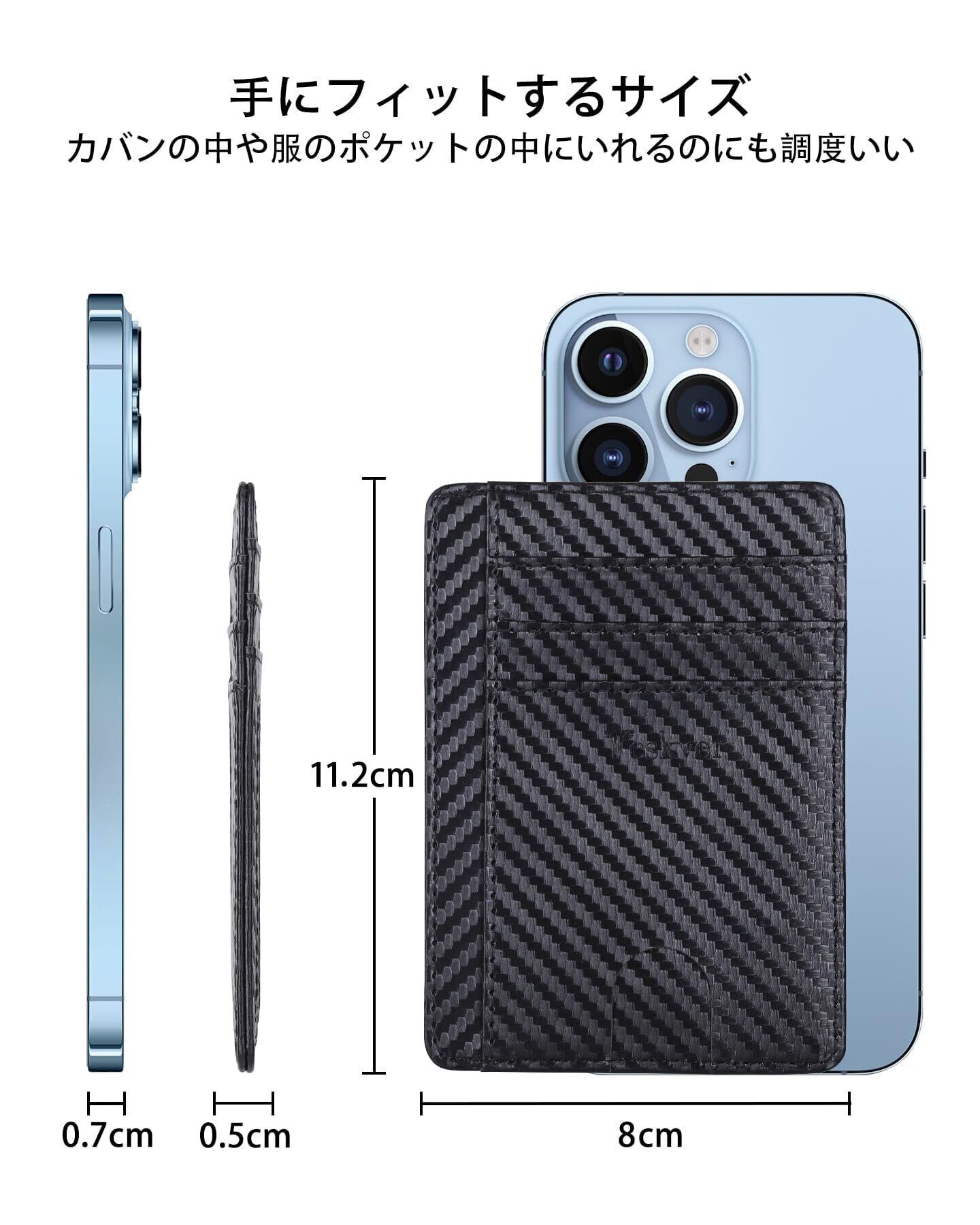 【素材】毎日使うものだから素材にこだわっています、丈夫で水にも強く、耐久性も抜群、経年変化もなく発色の良さも長く続きます。サイズについて:縦12×横8.7×幅0.5cmのコンパクトサイズ、重さ(約)28グラム、フロントスーツやジーンズのポケットに手軽に入るので思いついたらすぐ外出OK!