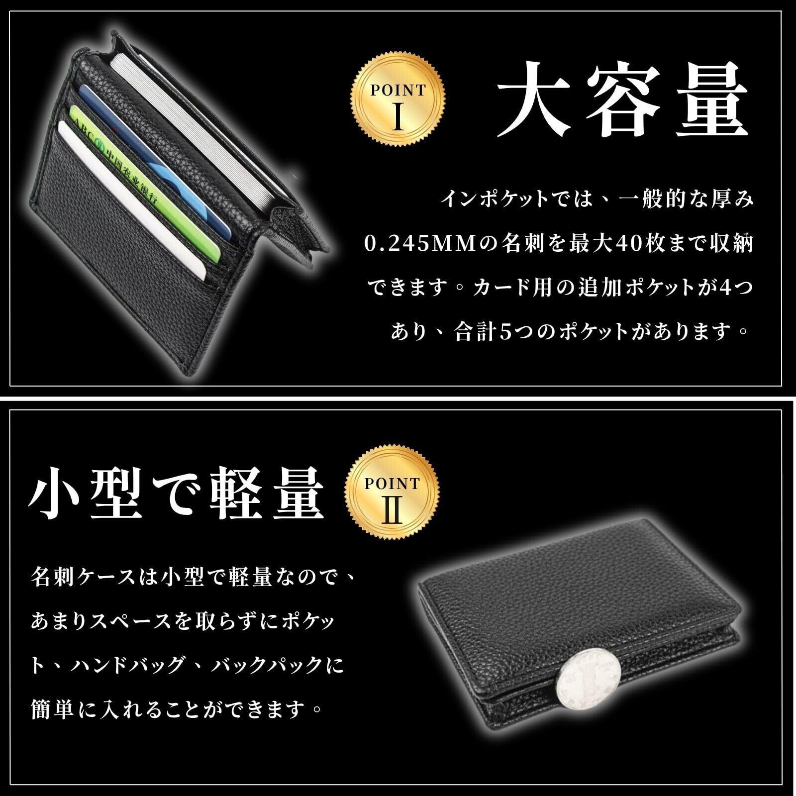 「小型で軽量、持ち運びも簡単!」名刺ケースは小型で軽量なので、あまりスペースを取らずにポケット、ハンドバッグ、バックパックに簡単に入れることができます。毎日の旅行、出張、レジャー活動など、持ち運びに便利です。薄型軽量設計なのでポケットに入れてもかさばらないので、持ち運びにも便利です。