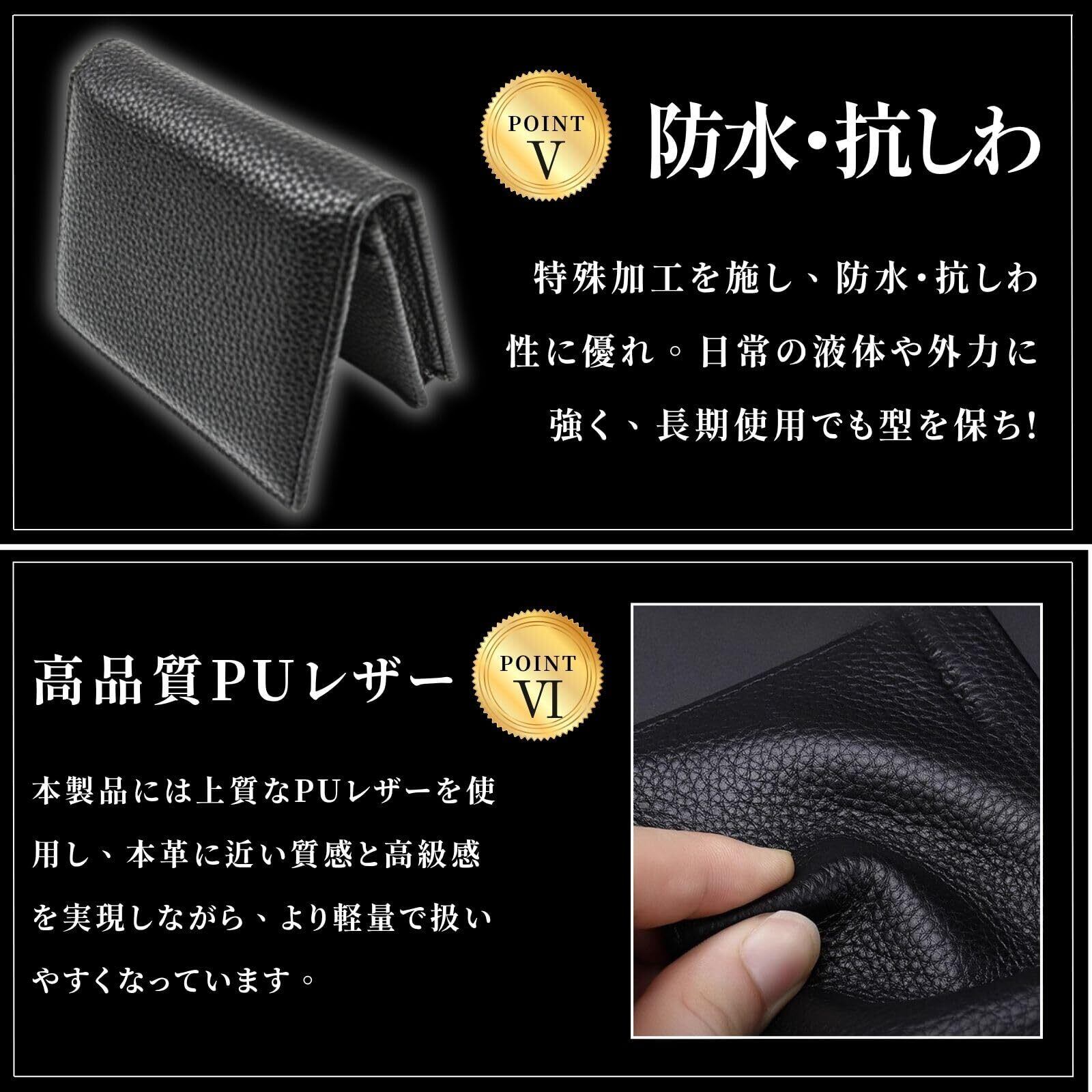【限定セール】[VmanKu] 名刺入れ メンズ 名刺ケース PUレザー 5ポケット 大容量 おしゃれ 薄型 幅広タイプ 取り出し簡単 カードケース 男女兼用 (ブラック)