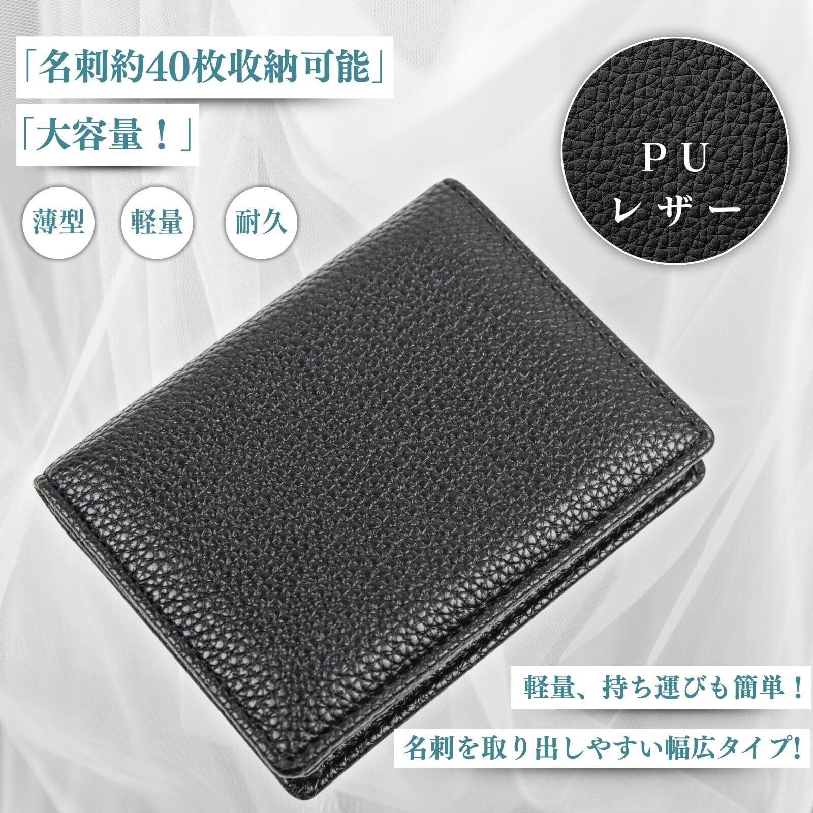 [VmanKu] 名刺入れ メンズ 名刺ケース PUレザー 5ポケット 大容量 おしゃれ 薄型 幅広タイプ 取り出し簡単 カードケース 男女兼用 (ブラック)