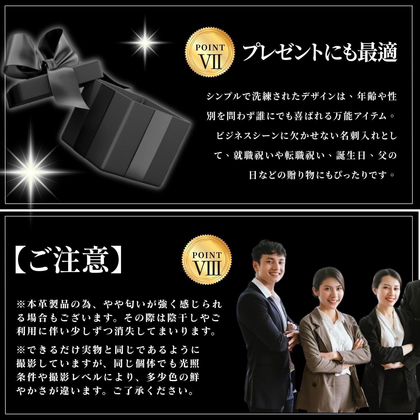 「プレゼントにも最適!」シンプルで洗練されたデザインは、年齢や性別を問わず誰にでも喜ばれる万能アイテム。ビジネスシーンに欠かせない名刺入れとして、就職祝いや転職祝い、誕生日、父の日などの贈り物にもぴったりです。