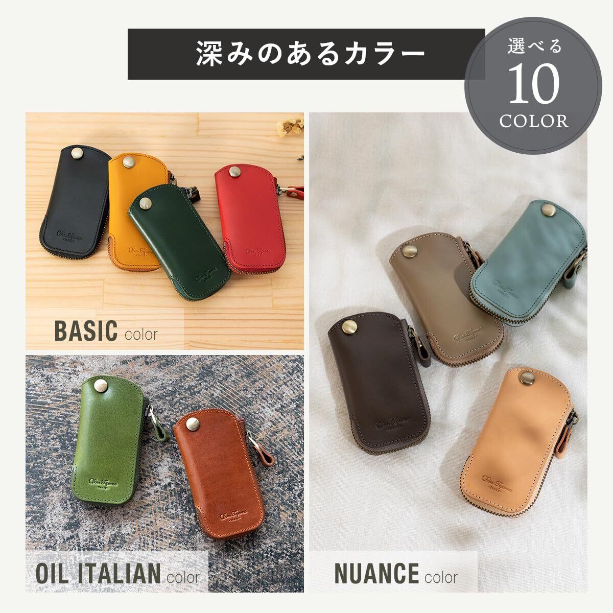 【数量限定】[Dom Teporna] キーケース 本革 イタリアンレザー スマートキーケース カバー 薄い コンパクト キーホルダー 経年変化 メンズ レディース