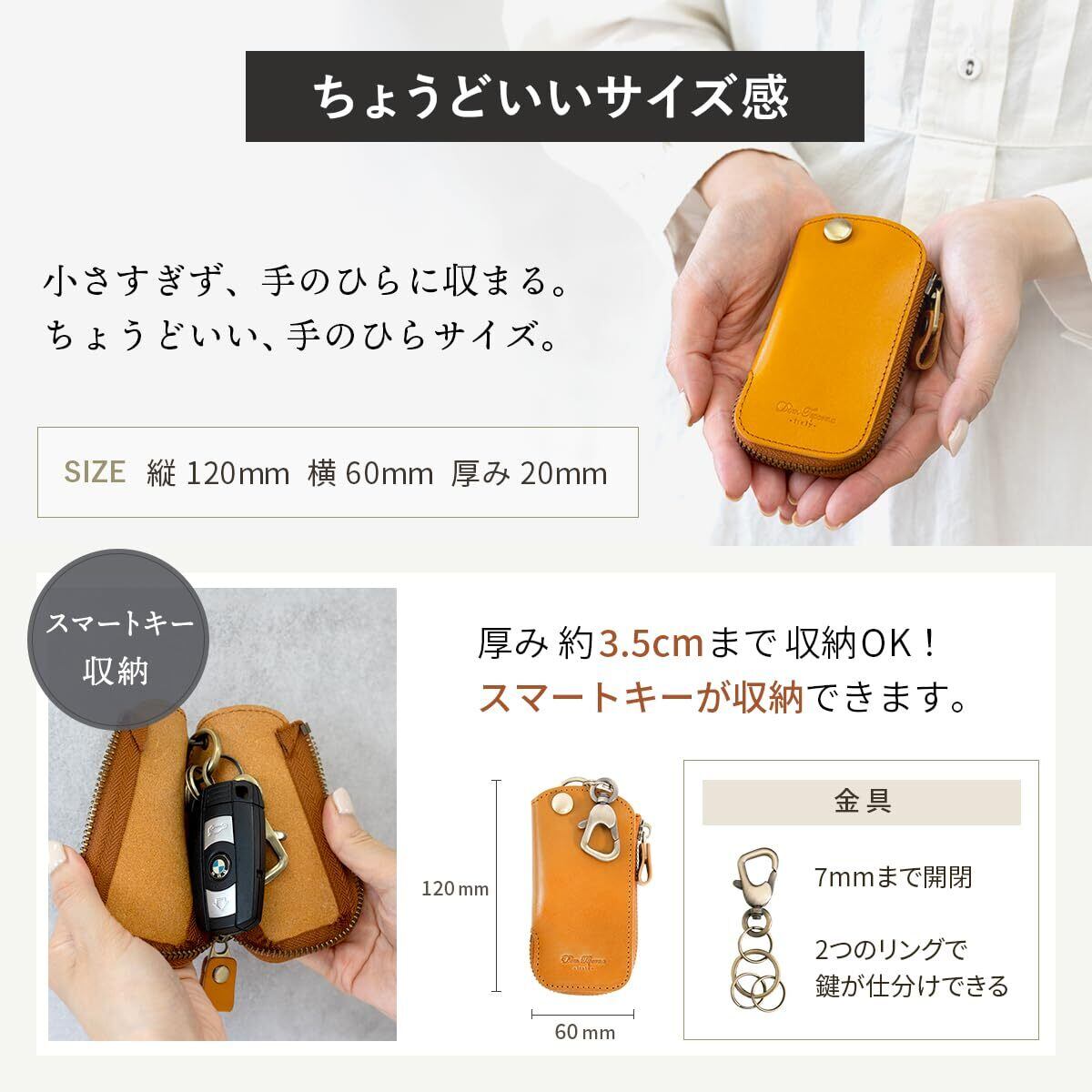 [Dom Teporna] キーケース 本革 イタリアンレザー スマートキーケース カバー 薄い コンパクト キーホルダー 経年変化 メンズ レディース