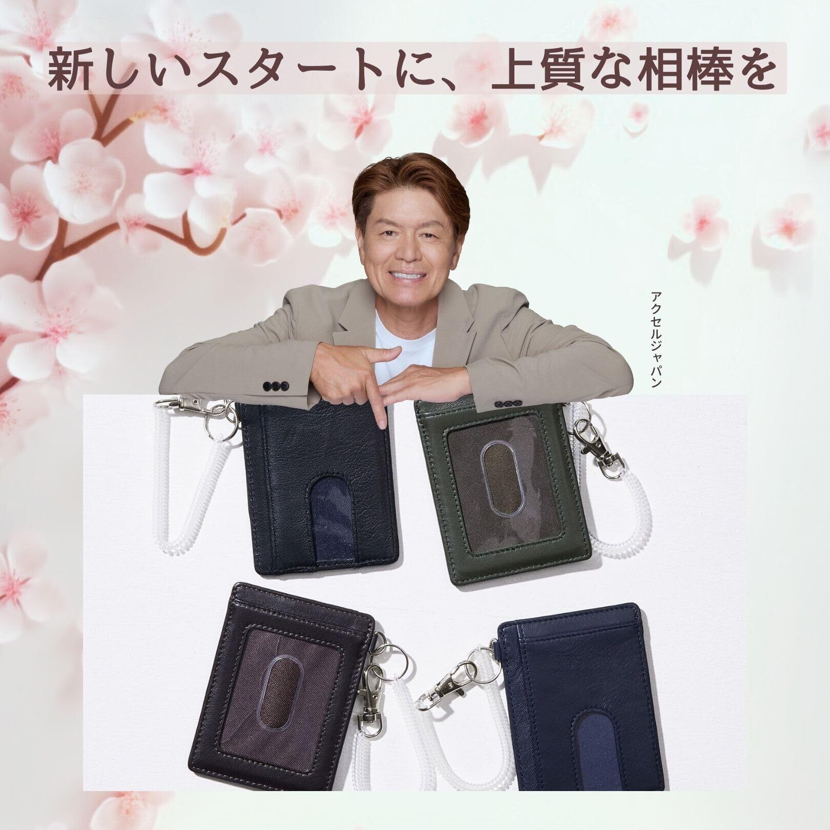 [Pregiudizio] メンズ 軽くて薄い イタリア製 ラム革 単パスケース 定期入れ ランヤード付き (Black N)