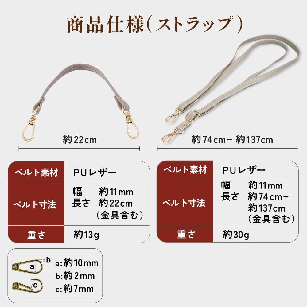 製品情報 ・ポーチ本体 素材 : PUレザー サイズ : 約18cm×約12cm 重量 : 約50g ・ハンドストラップ 素材 : PUレザー サイズ : 幅 約11cm 長さ 約22cm(金具含む) 重量 : 約13g ・ショルダーストラップ 素材 : PUレザー サイズ : 幅 約11cm 長さ 約74cm~約137cm(金具含む) 重量 : 約30g