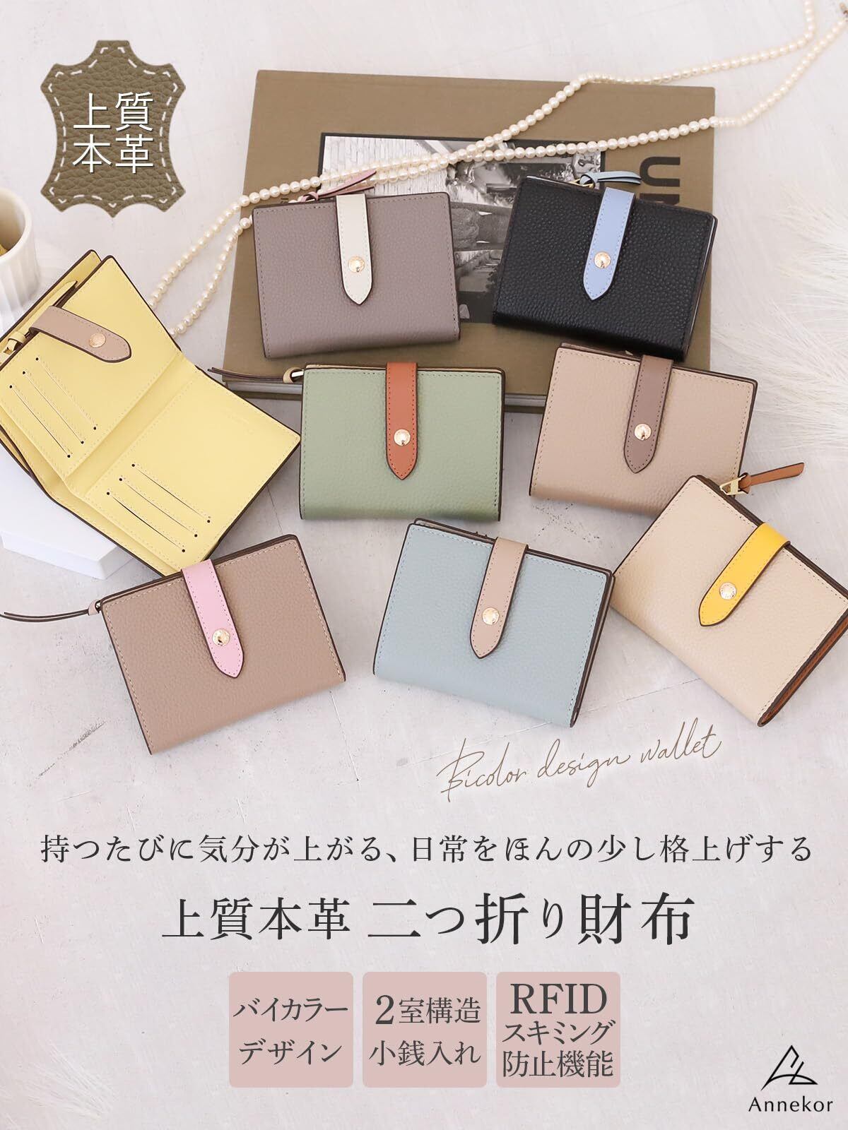 【限定セール】[アンコール] 財布 本革 【高見え バイカラー】 二つ折りクリスマス レディース ミニウォレット 小さい スキミング防止 プレゼント ギフト 女性 折り畳み 軽量 コンパクト 革 ミニ財布 人気 ジャパン (トープ/グレージュ)