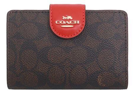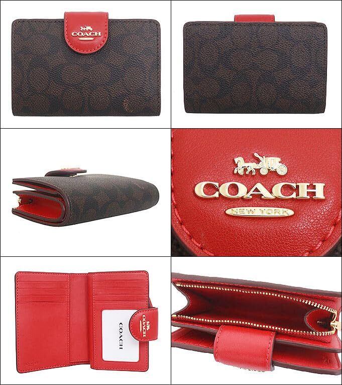 【限定セール】[My Organyee] レディース 財布 通販 L型 ショルダー二つ折り財布 ミディアム コーナー ジップウォレット シグネチャー キャンバス アウトレット (ウォルナット×レッド) [並行輸入品]