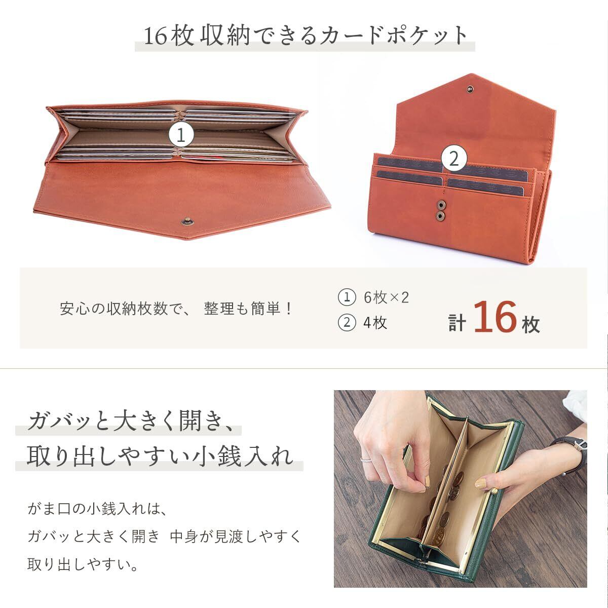 【数量限定】[RafiCaro] 長財布 レディース がま口 財布 がまぐち小銭入れ カード入れ 大容量 大人 PUレザー ロングウォレット ブラウン
