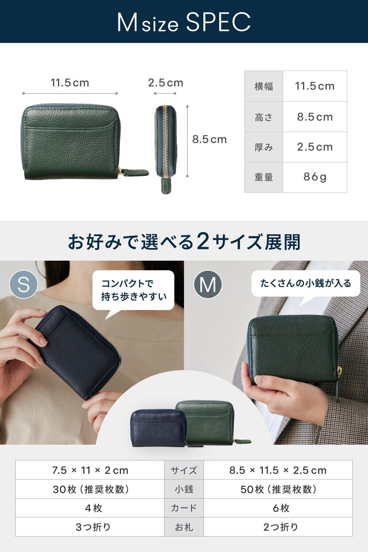 【本体サイズ】:11cm × 8.5cm × 2.5cm ポケットに入れても膨らまないコンパクトサイズの小銭入れ。ユニセックスモデル