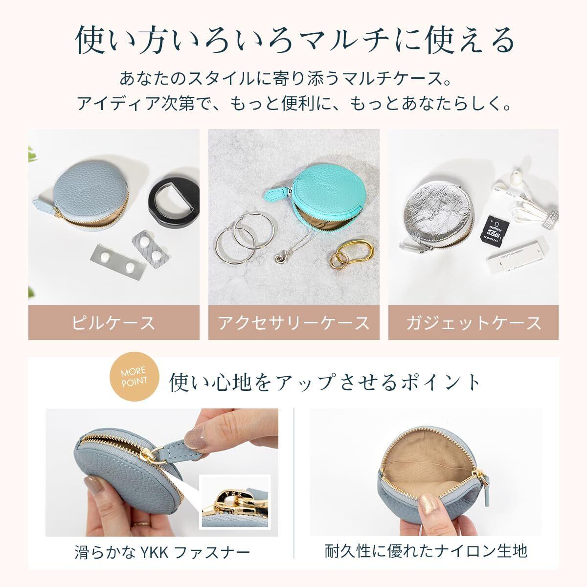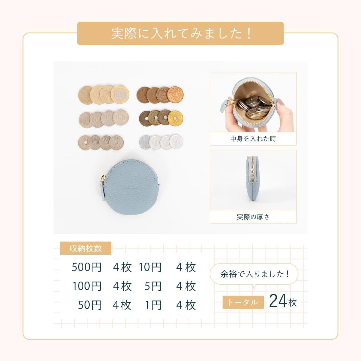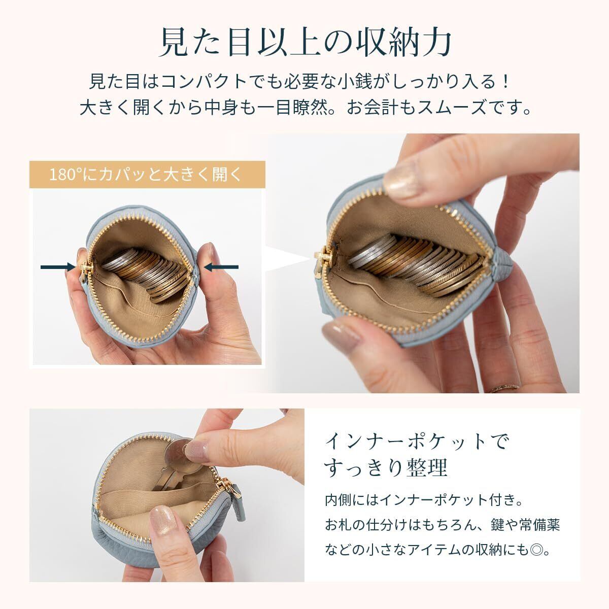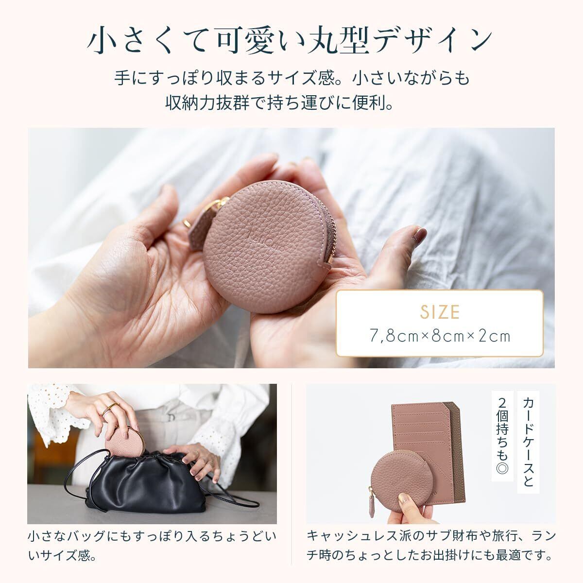 【手のひらサイズのレザーケース】 まるいフォルムがかわいい小銭入れです。小さめバッグにもポケットにも収まり、気軽に持ち歩けるサイズ感。見た目以上の収納力。コイン以外にもアクセサリーやイヤフォンのケースとしてもお勧めです。