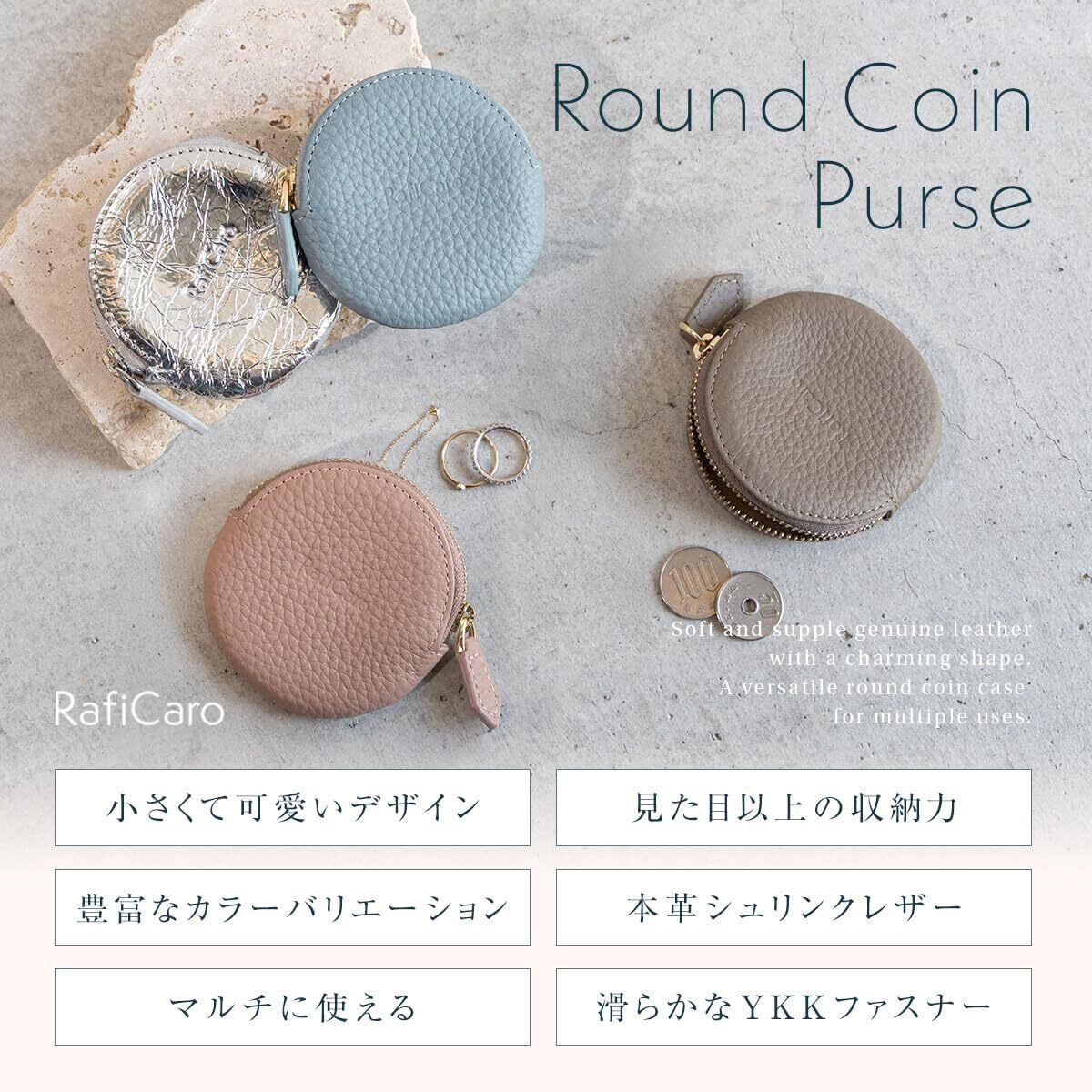 【新着商品】[RafiCaro] コインケース 丸型 小銭入れ 本革 YKKファスナー ミニ財布 ミニポーチ 小物入れ 化粧ポーチ マルチケース ラウンド型 シンプル おしゃれ 軽量 ゴールド