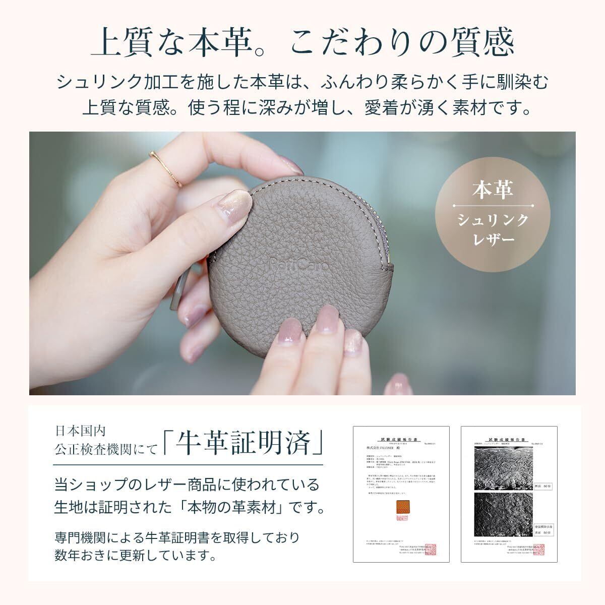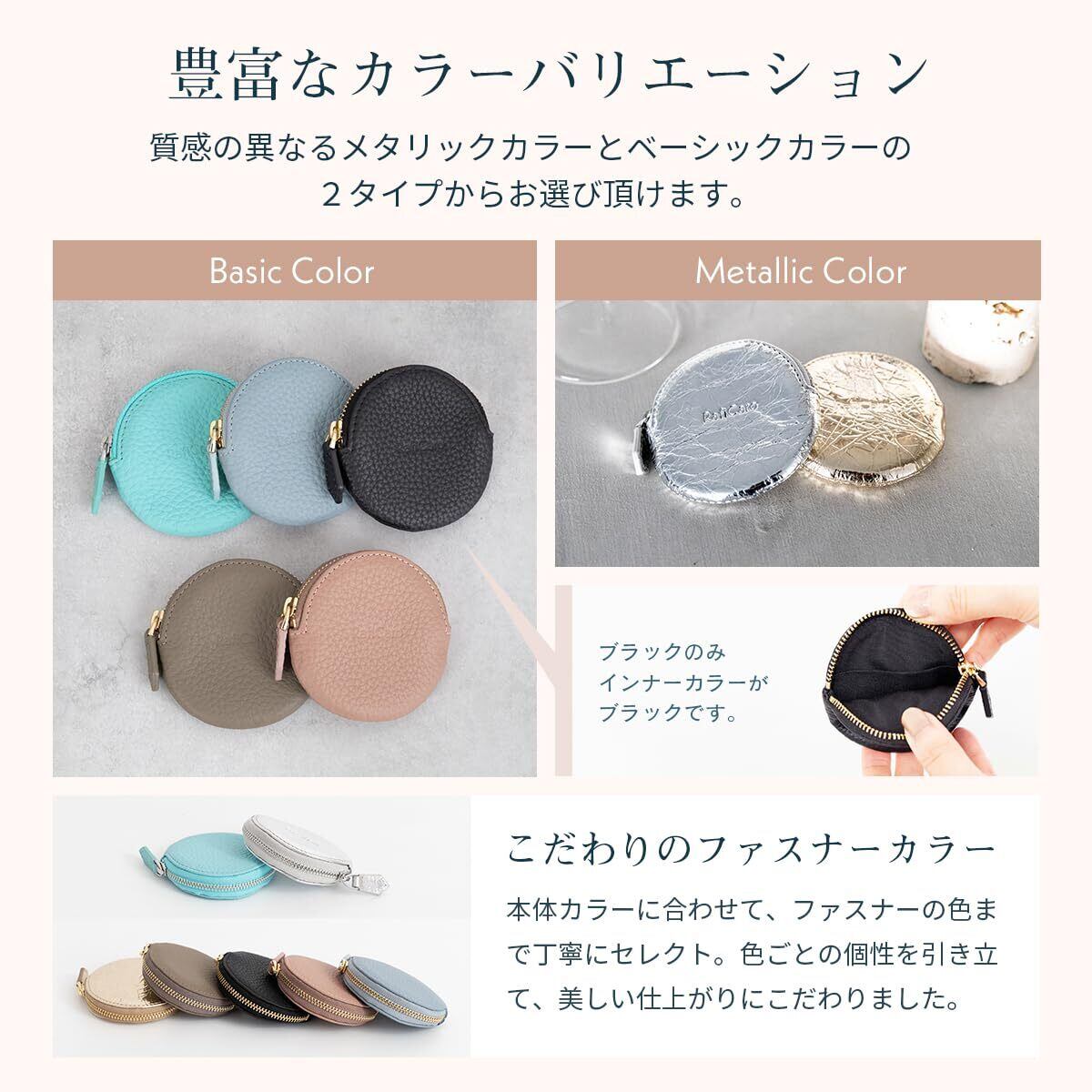 【手触りの良い本革仕様】 優しく手に馴染む、柔らかなシュリンクレザーを使用しています。ファスナーはYKK製、内側には仕分けに便利なインナーポケットをお付けしました。豊富なカラーバリエーションで、色違いのプチギフトにも◎