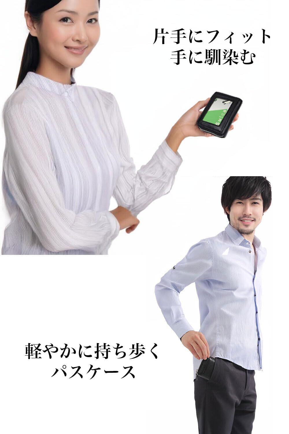 パスケースの表面に透明ICカードポケット、裏面にもカードポケットがあり、両面に定期券やカードを入れることが可能です。表面と合わせてカード2枚入れることが可能です。もちろんそのまま改札機にタッチ可能。*ICカードは複数枚入れると干渉して反応しなくなることがございます。
