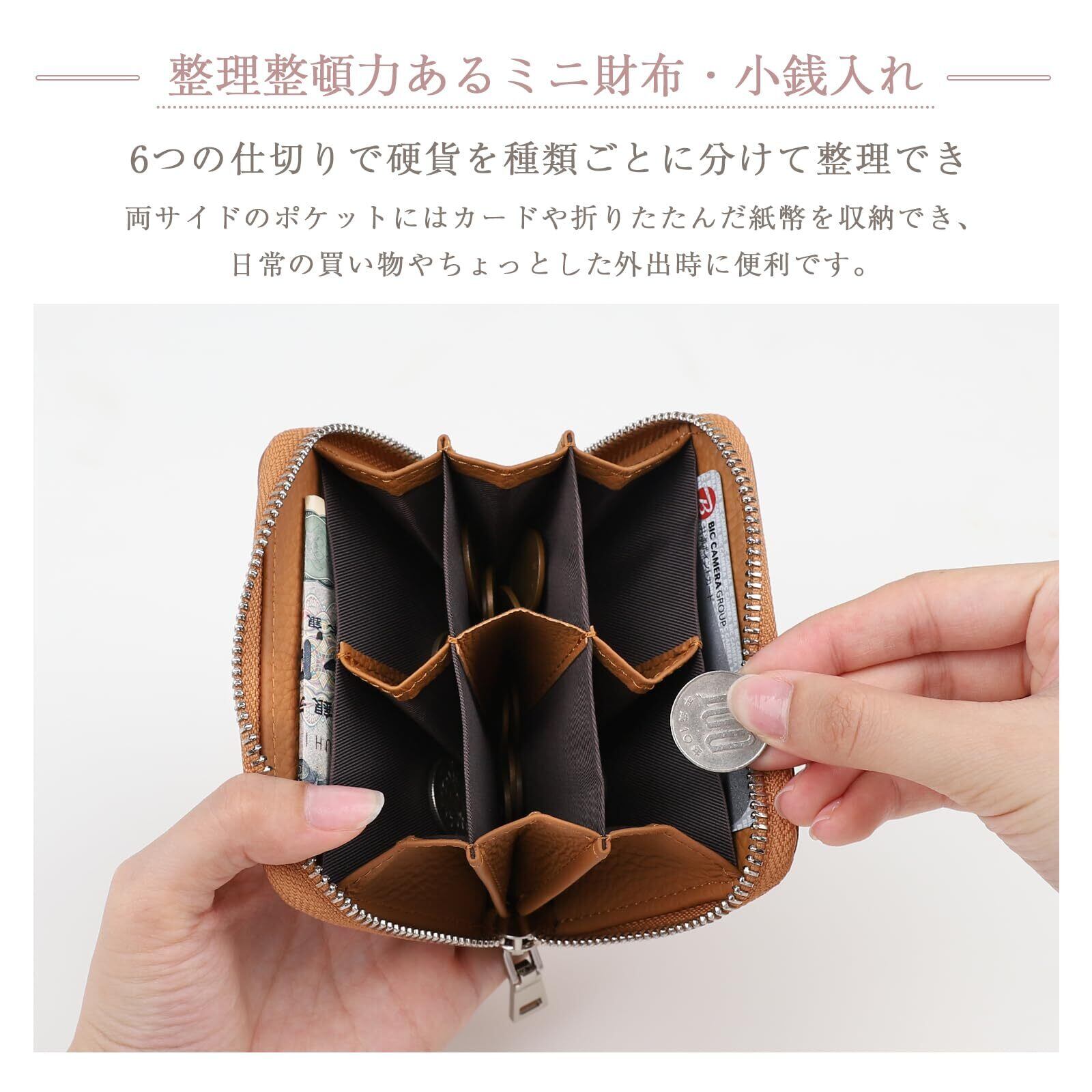 [imeetu] ミニ財布 コインケース キーケース 小銭入れ 6つの仕切り 本革 コンパクト 軽量 便利 小さい 牛本革 多機能 小物入れ シンプル カジュアル 男女兼用(キャラメル)