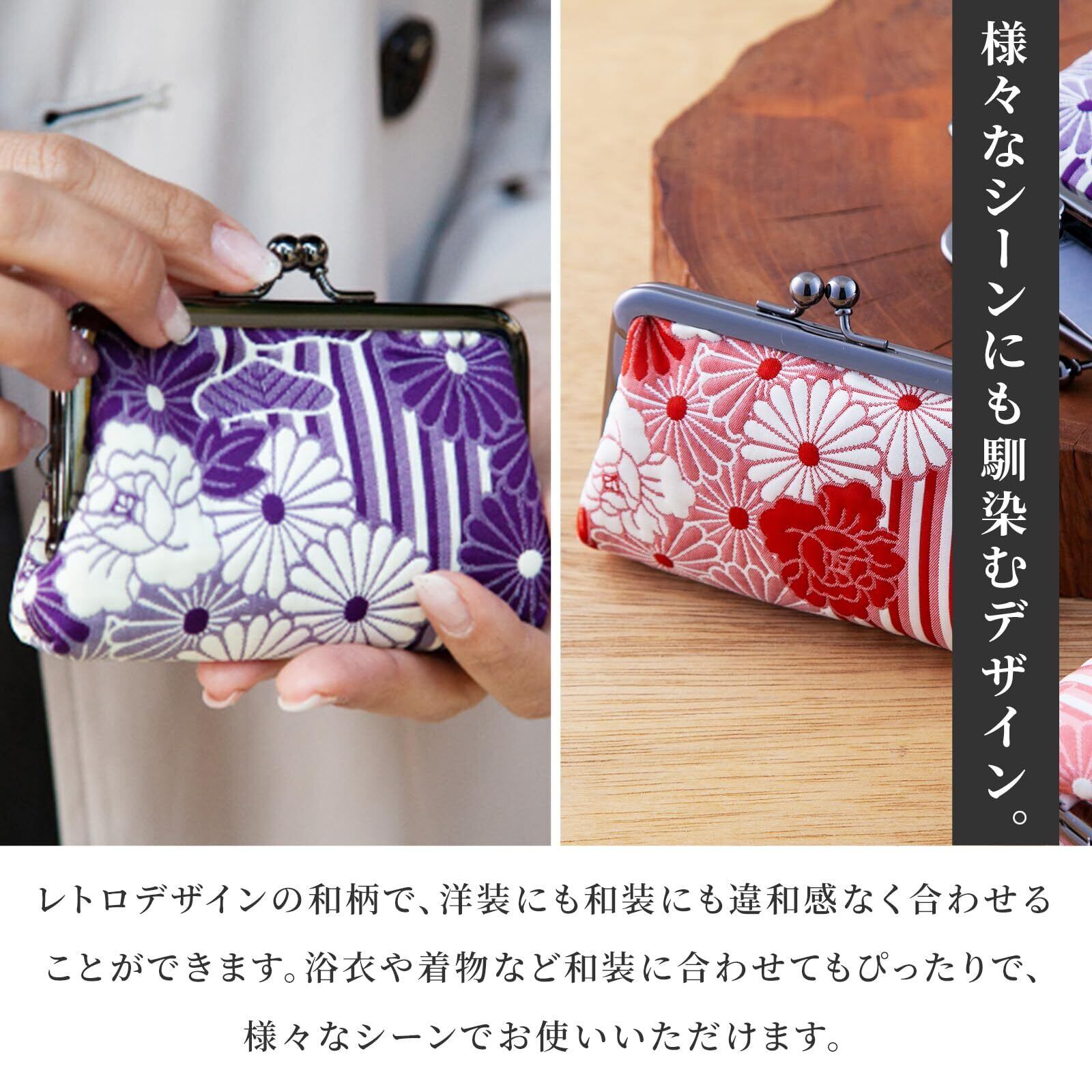 [のレン] レディース がま口 財布 / [ 親子がま口 14×12×2.5cm 二重がま口 外ポケット付き ] / [ がま口小銭入れ ミニ 丸型3.3寸 角形11.5×7.5cm ] / 日本製 がま口財布 コインケース カードケース 和柄 花柄