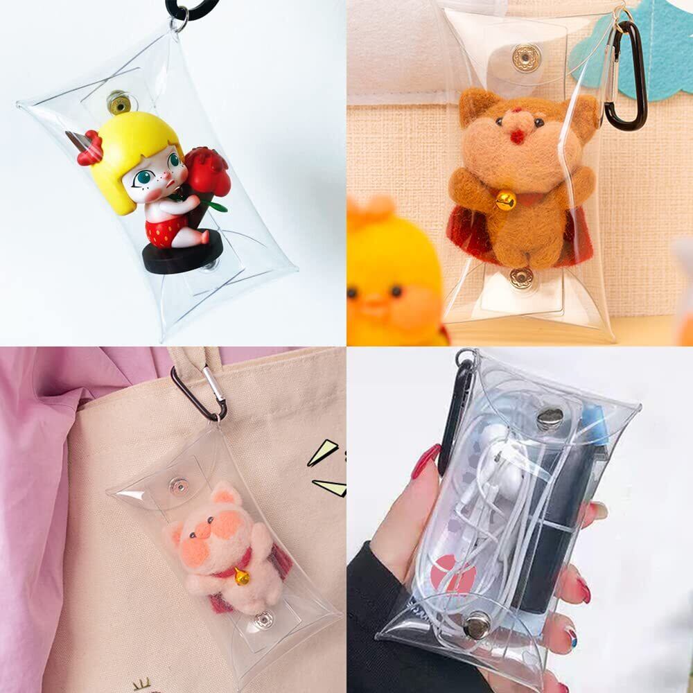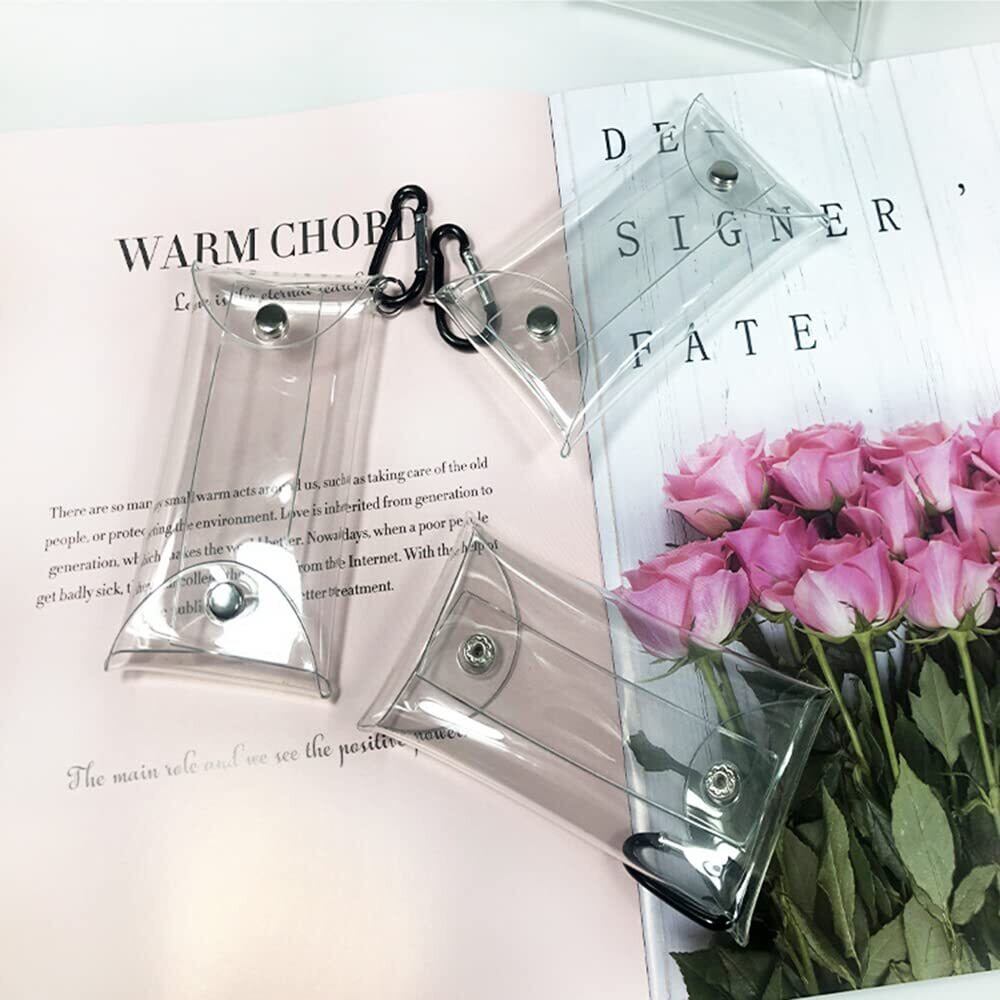 サムコス 小銭入れ 透明 4個セット ミニポーチ ウォレット ミニ財布 キーケース コンパクト 可愛い カラビナ付き 洗える 携帯用 取り出し便利 (透明4点)