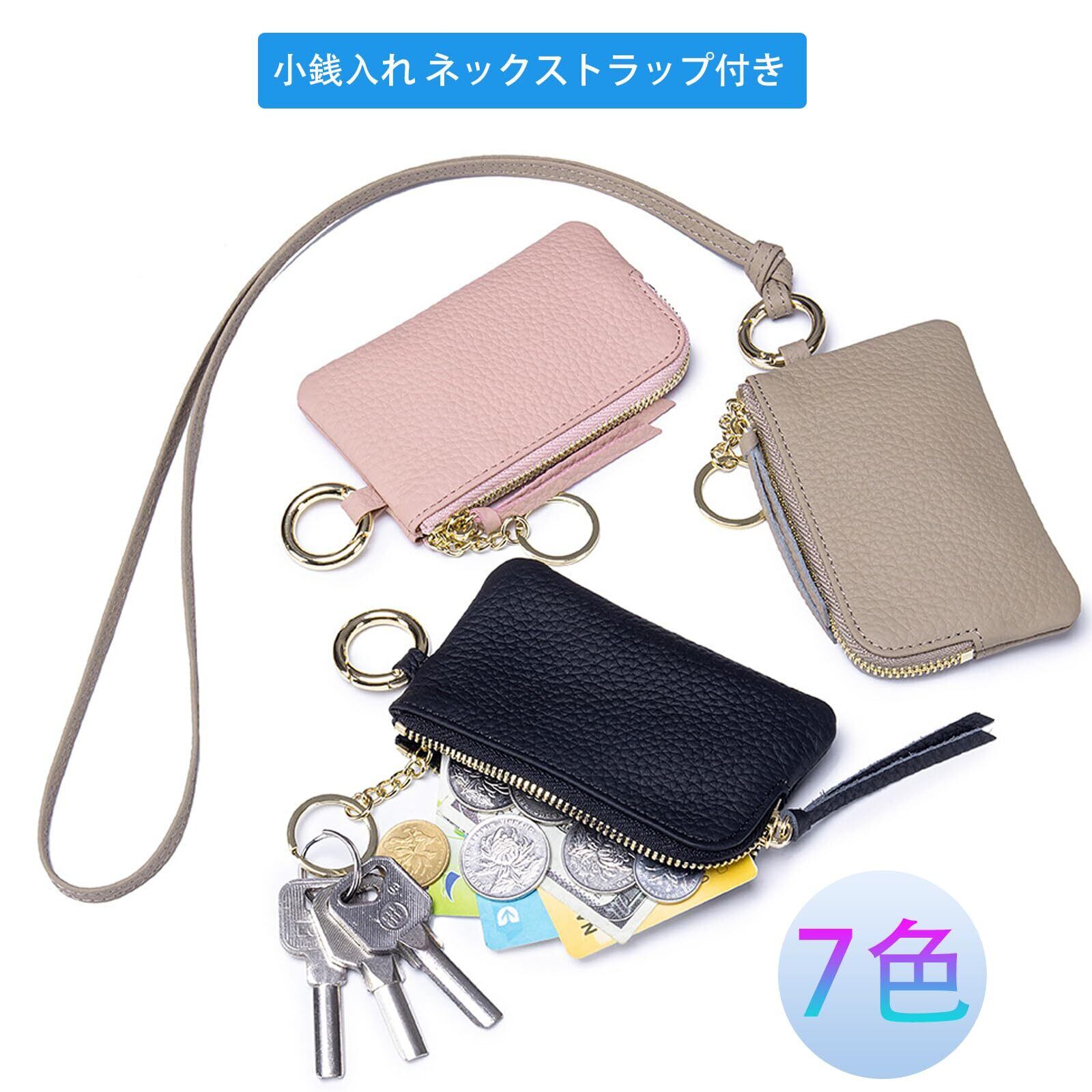 本革 小銭入れ レディース ネックストラップ付き パスケース 首掛け 定期入れ おしゃれ 人気 ジッパー コインケース キーホルダー付き 軽量 コンパクト IC IDカード入れ 落下防止 革 財布 大人 子供 通勤 通学 旅行 便利 ブラック