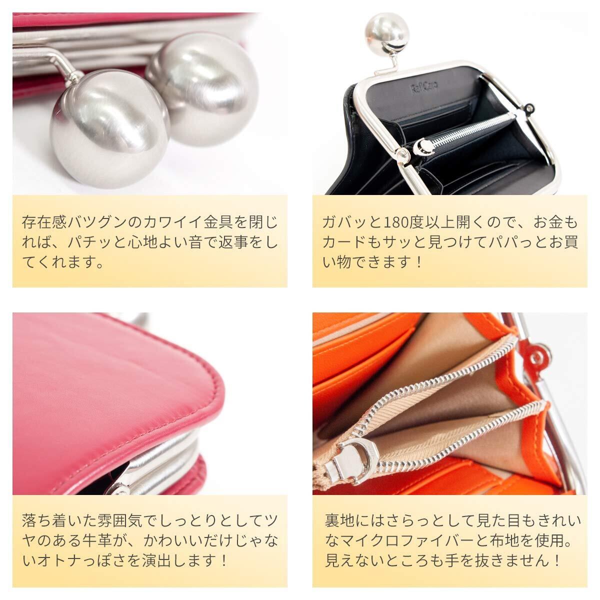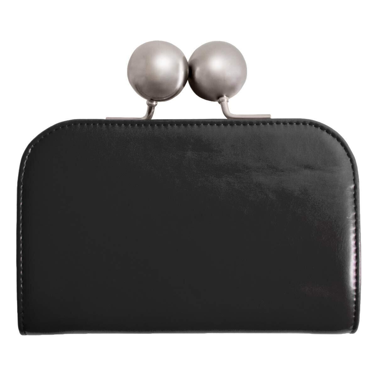 [RafiCaro] 大玉 がま口 財布 レディース 大容量 牛革 大きい お札入れ 小銭入れ コインケース カードポケット 革 レザー ウォレット ブラック