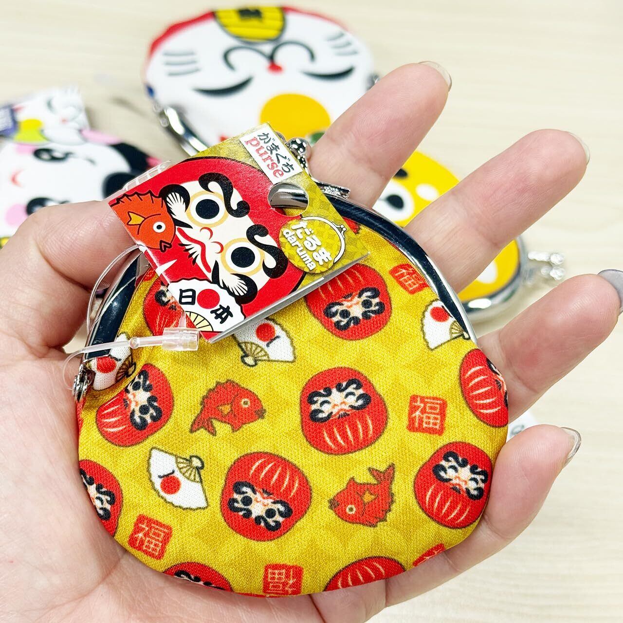 小銭はもちろん、サプリメントやヘアゴム、ピンなど小物を入れるのに便利な手のひらサイズのがまぐち財布です。