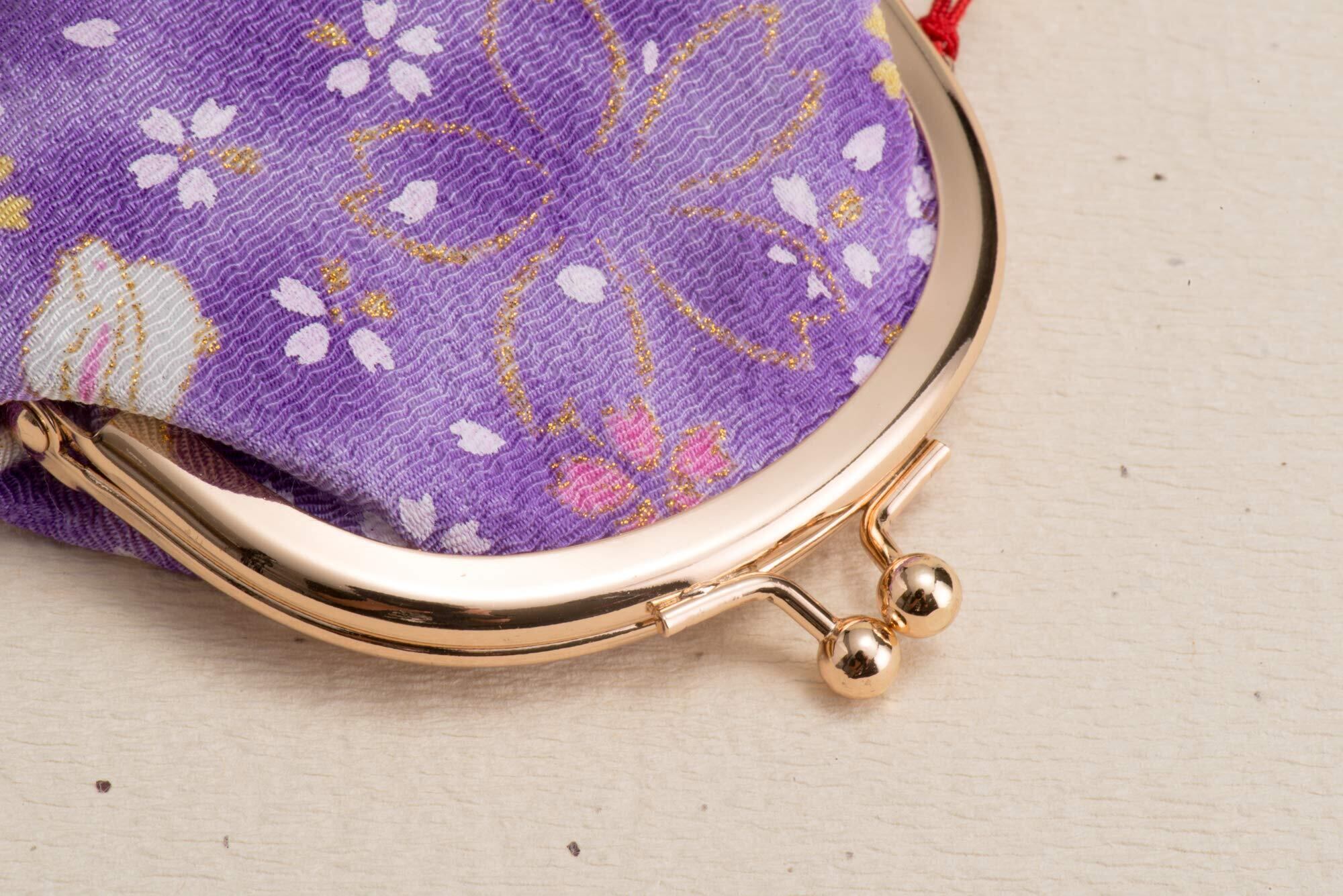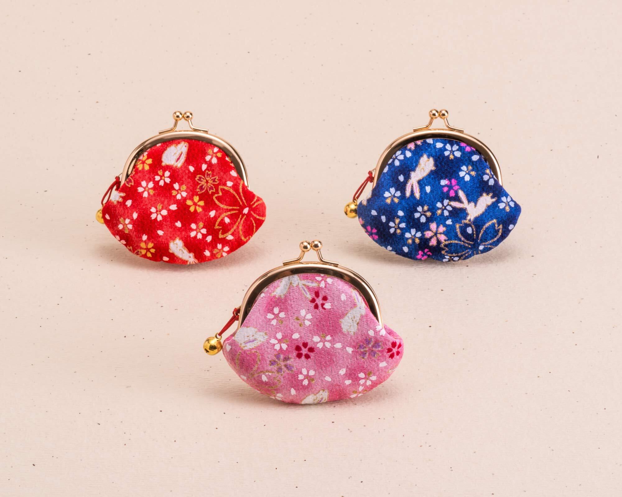 京都藝美堂 京友禅 うさぎ柄 鈴付き2.6寸がま口財布 日本製 (ピンク)