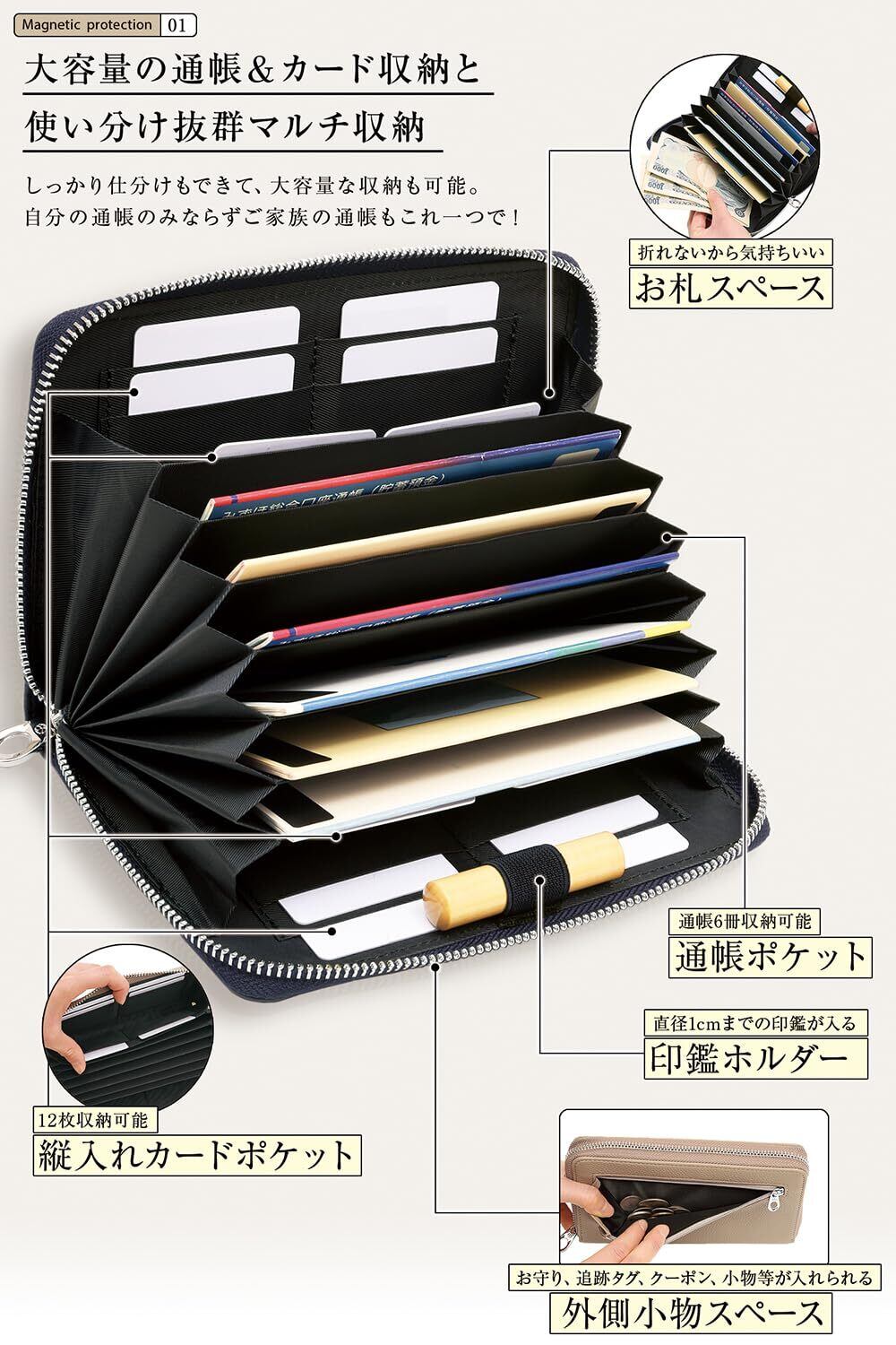 [BLUE SINCERE] 印鑑も入る 通帳ケース 本革 磁気防止 大容量 カード12枚収納 通帳入れ 革 レザー レディース RFID パスポート カードケース / TC1 (ロイヤルブラック)