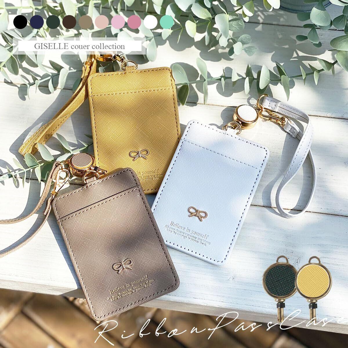 [ジゼル] パスケース 定期入れ リール付き レディース 両面 icカードケース 社員証 カードケース ストラップ付 リボン