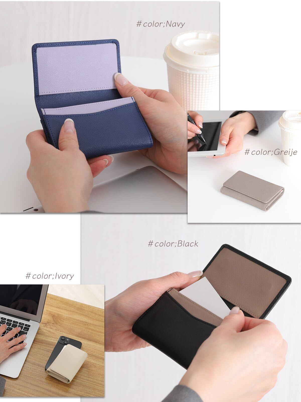 [honey&blue] 名刺入れ レディース 本革 【マグネット付しっかり閉まる】 薄型 大容量 (50枚収納)汚れに強い おしゃれなバイカラー 名刺ケース 名刺ホルダー カードケース (グレージュ)