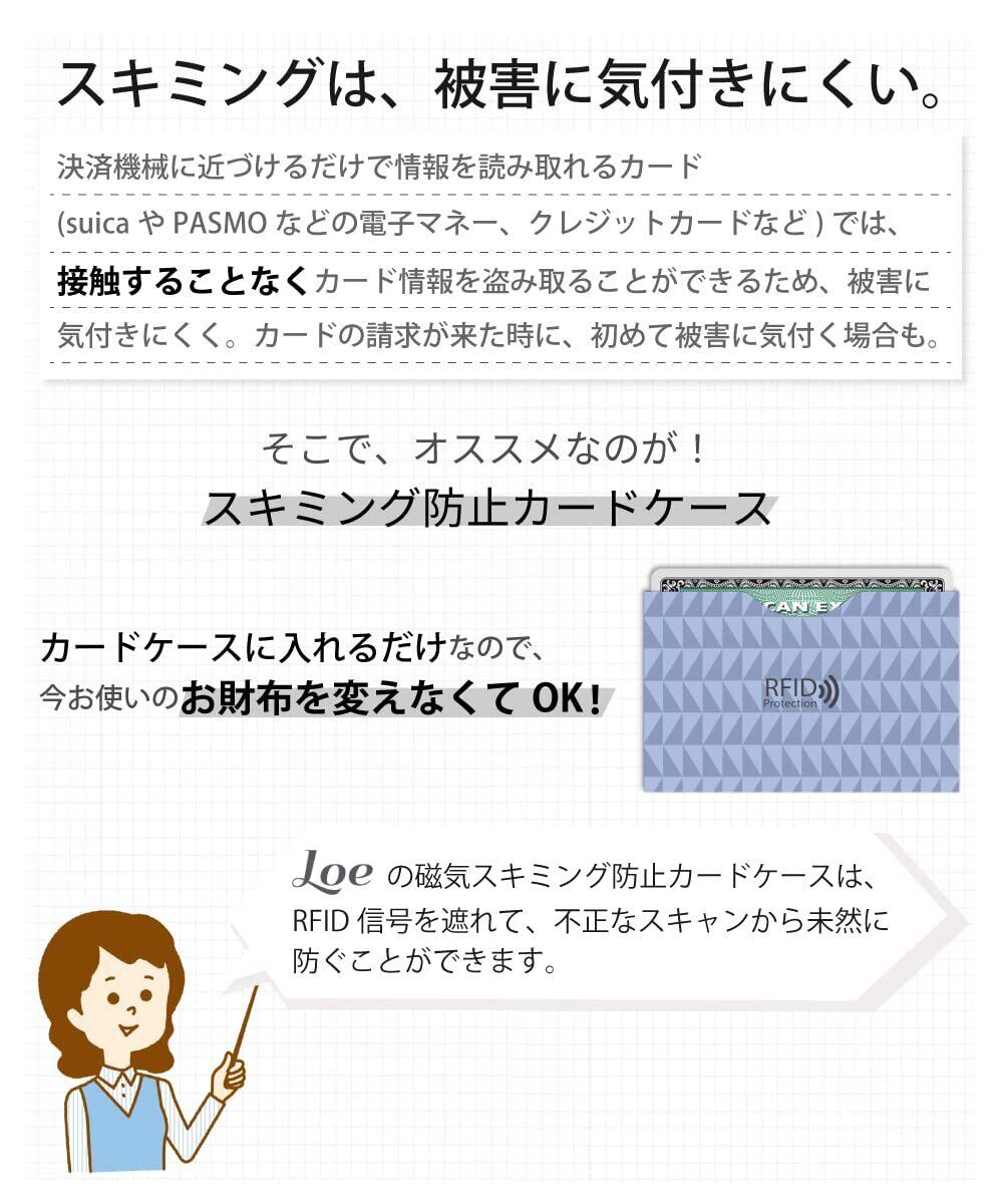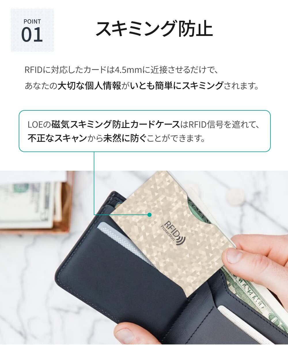 スキミング防止 : RFIDに対応したカードは4.8mmに近接させるだけで、あなたの大切な個人情報がいとも簡単にスキミングされます。LOEの磁気スキミング防止カードケースはRFID信号を遮れて、不正なスキャンから未然に防ぐことができます。