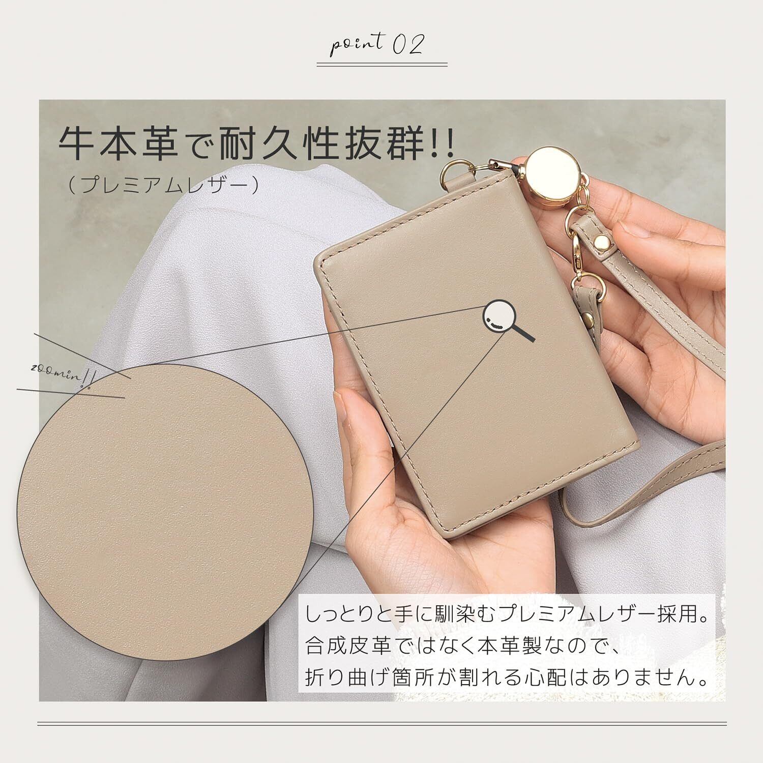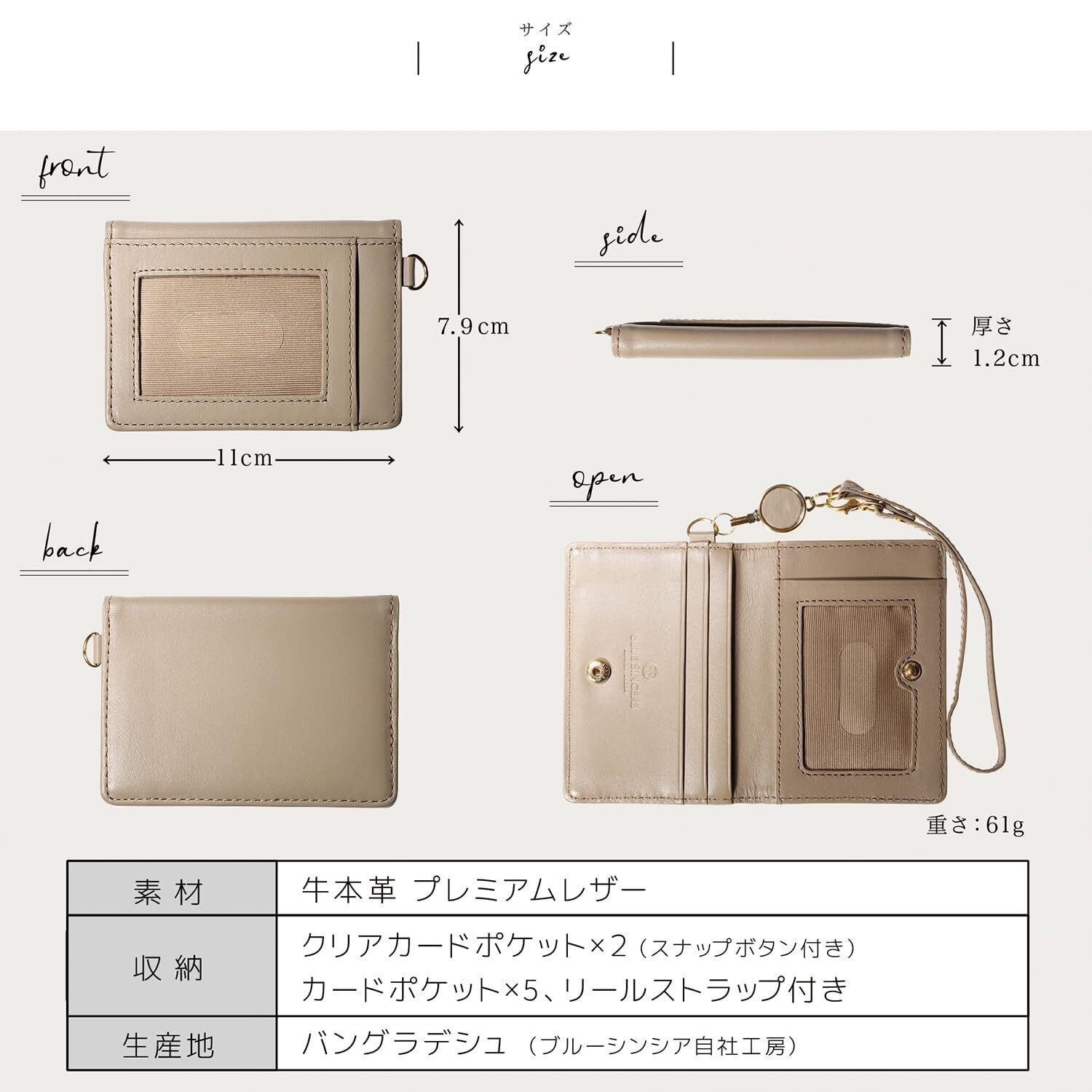 [BLUE SINCERE] パスケース リール付き 本革 レディース 大容量 7枚 定期入れ 社員証入れ 二つ折り 中が見えない 免許証入れ カードケース プレミアムレザー / PC9 (エトープ)