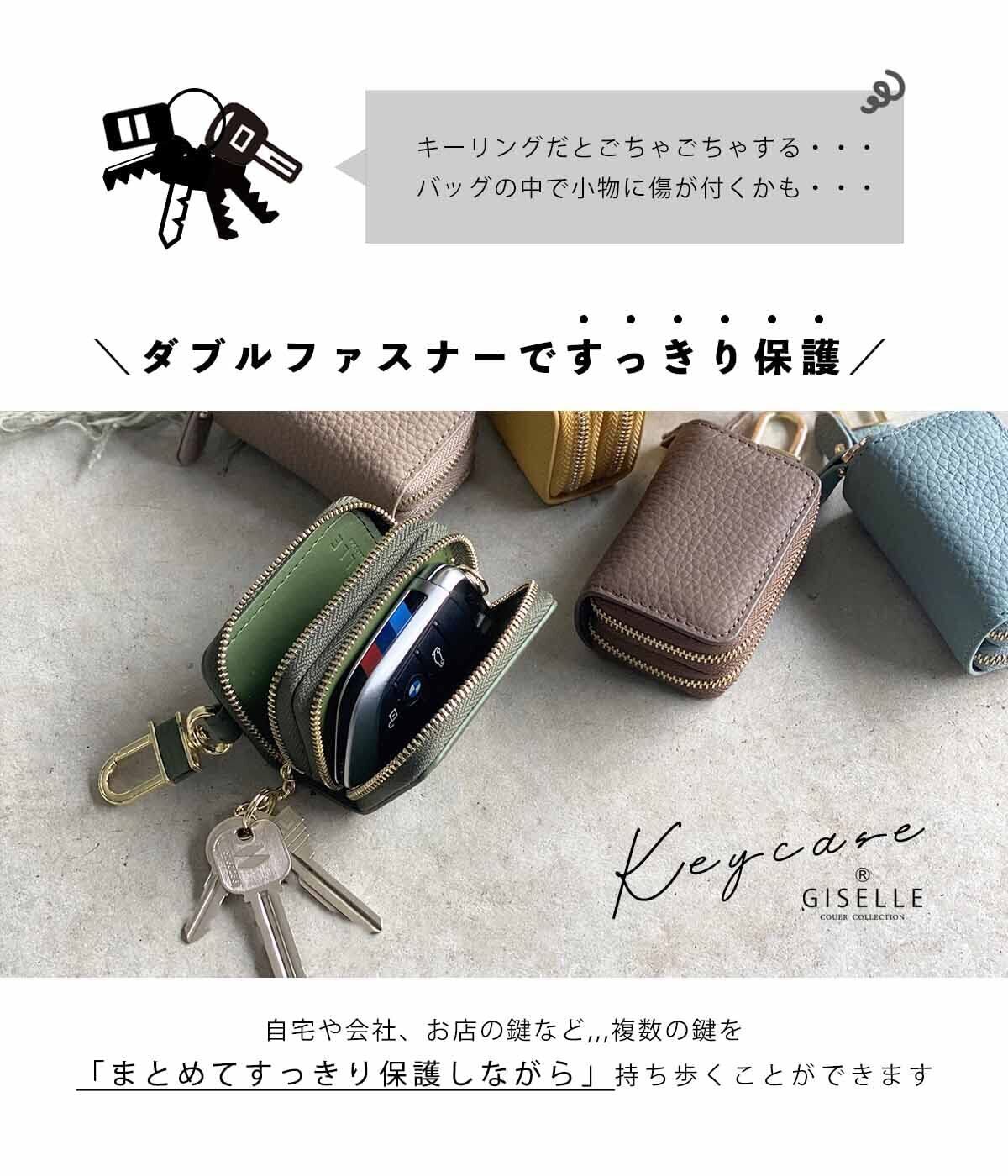 [ジゼル] キーケース スマートキーケース 2個収納 本革 レディース メンズ 鍵 キーリング キーチェーン ダブルファスナー 車