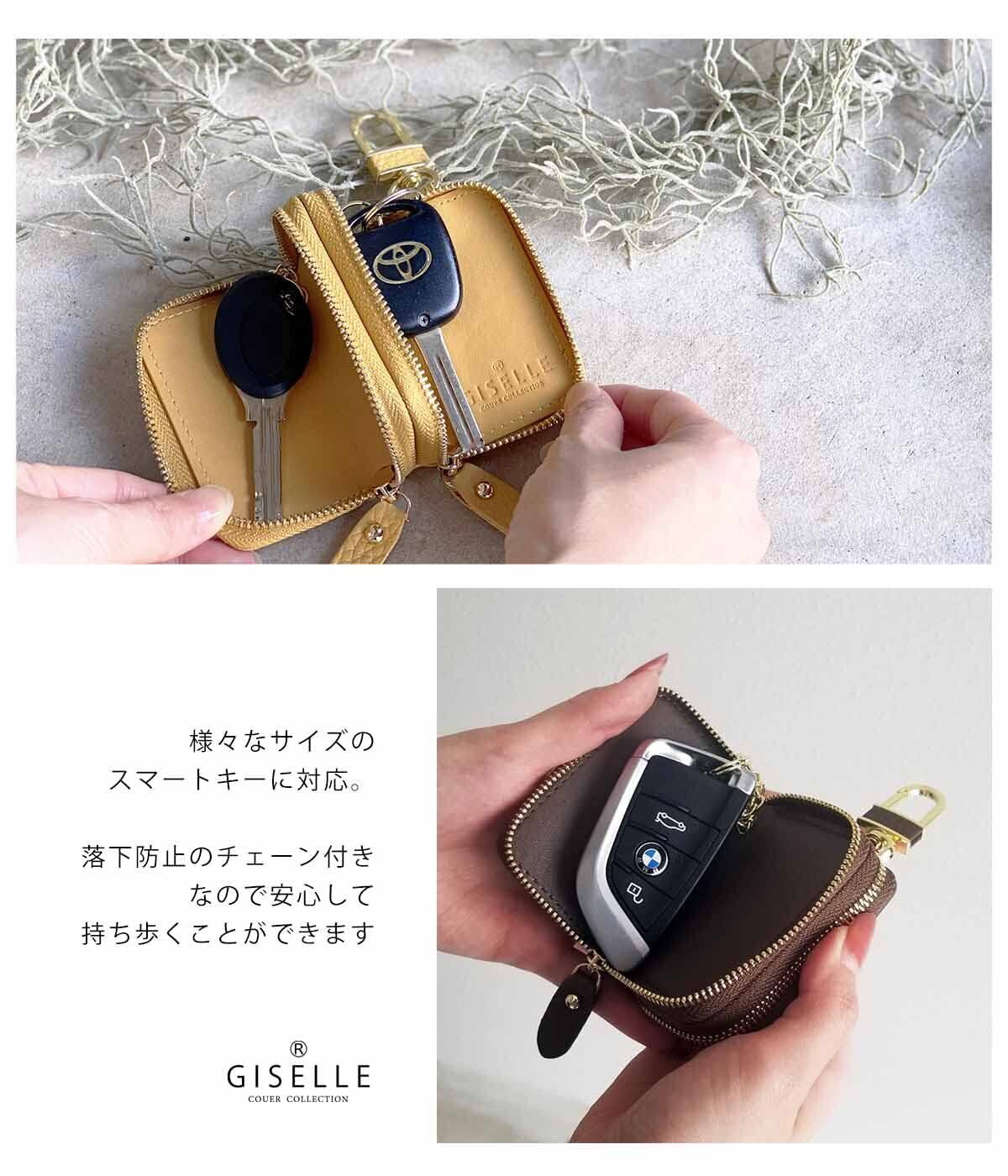 【数量限定】[ジゼル] キーケース スマートキーケース 2個収納 本革 レディース メンズ 鍵 キーリング キーチェーン ダブルファスナー 車