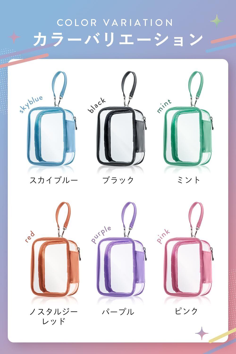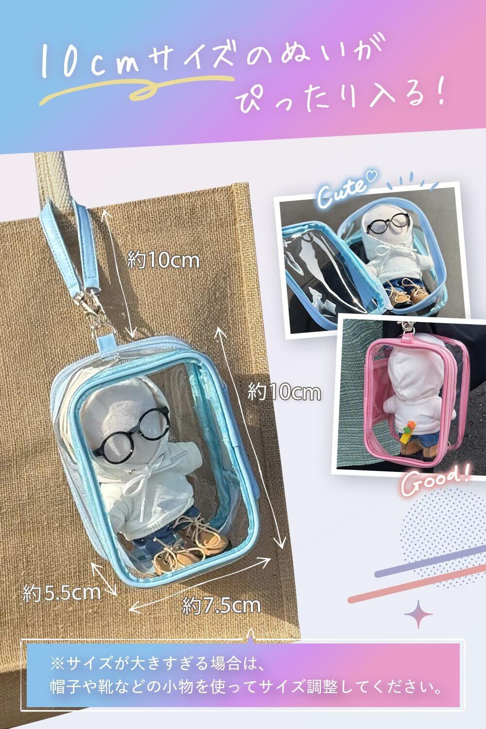 ✨【360°推しが見える!】推しは後ろ姿までかわいい。そんなこだわりの推しの姿は隠したくない!推しの背中までしっかり見えるように、Mowekのぬいぐるみポーチは前面も背面も透明PVC素材を使用。推しをクリアに際立たせます。