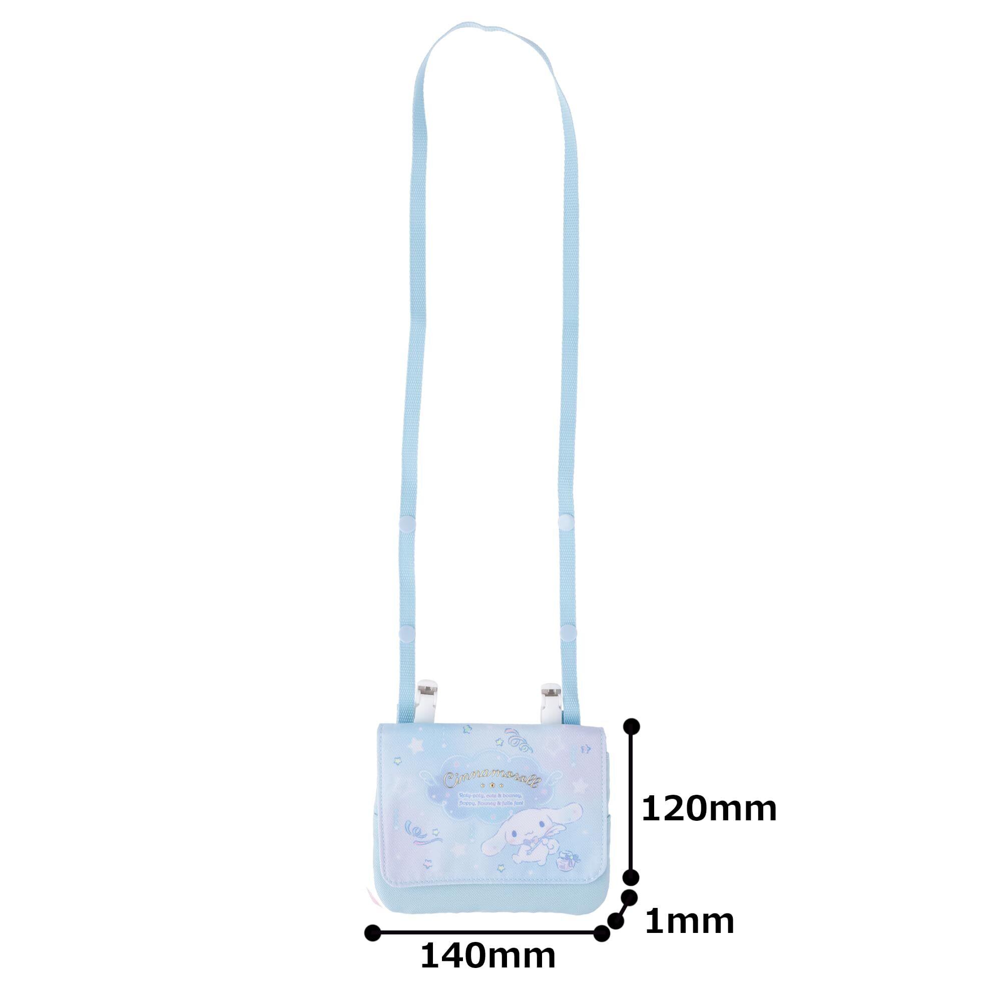 本体サイズ:約幅14×奥行1×高さ12cm(※ショルダー紐、クリップ部分含まず)ショルダー紐の長さ:約90cm。主な材料・原料:ポリエステル