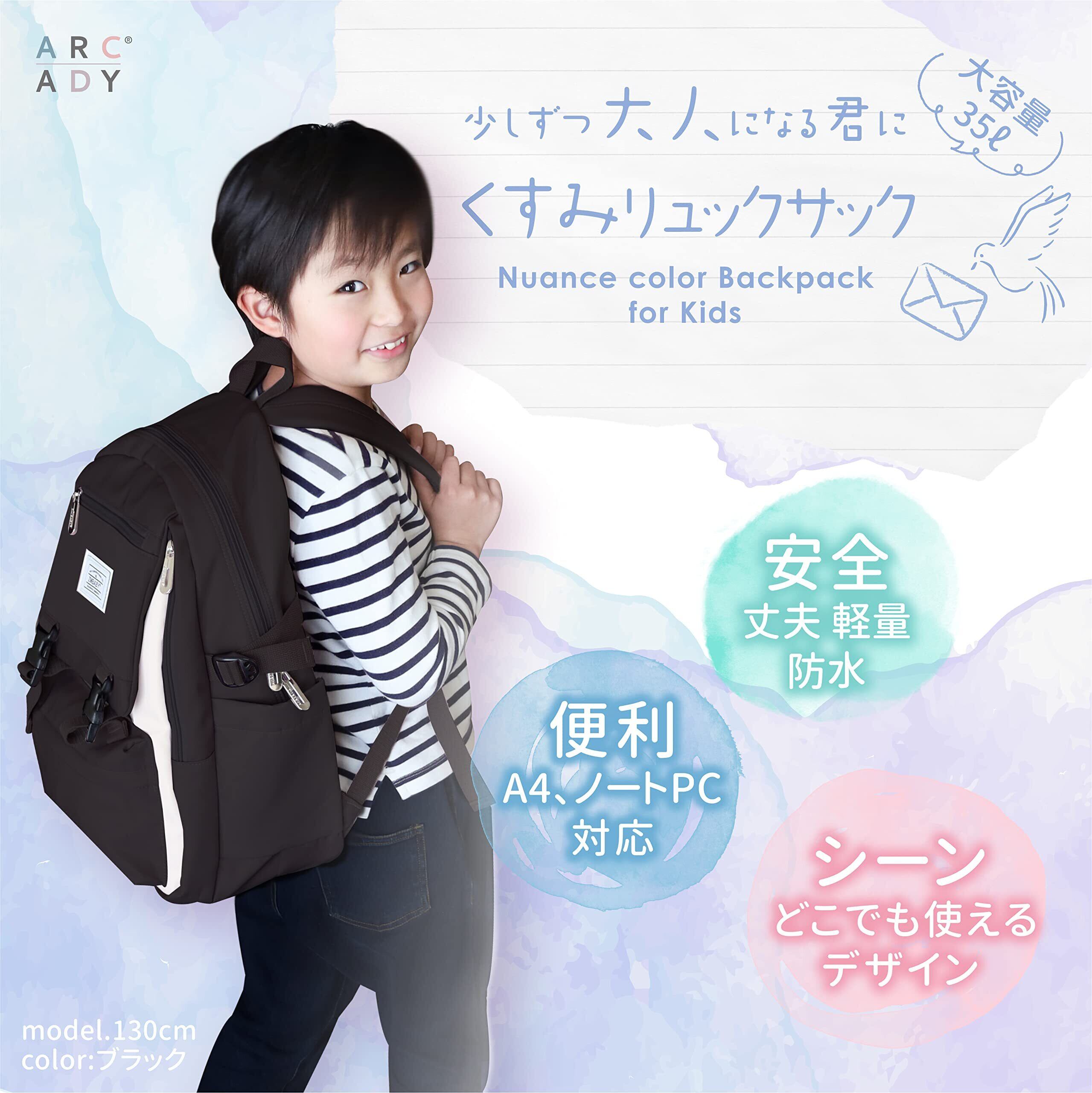 [ARCADY] くすみリュック キッズ 女の子 大容量 35L 通学 小学生 子供 A4収納 リュックサック
