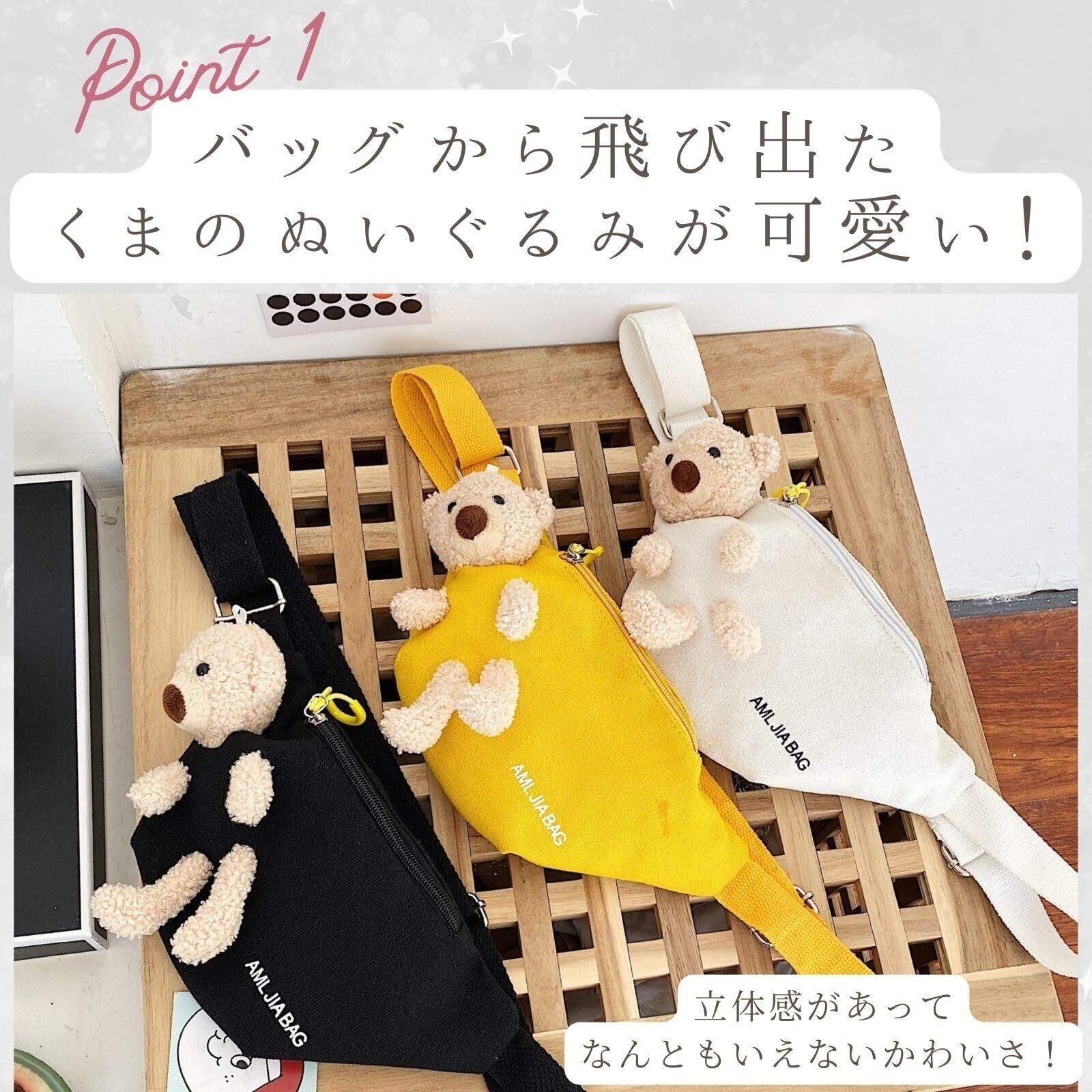 くまのぬいぐるみデザインが可愛いショルダーバッグです。お子さんのバックにもちょうど良い大きさ