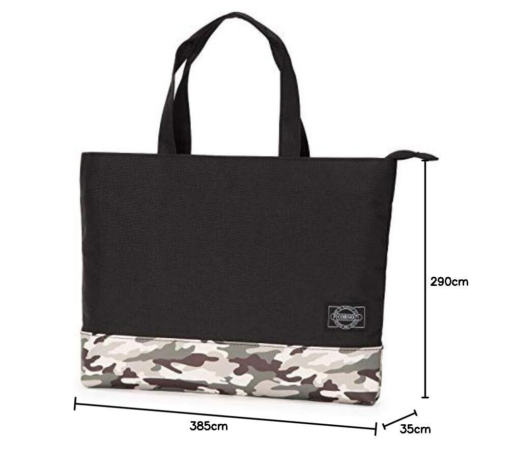 大きめのトートタイプで、A4サイズをらくらく収納可能。持ち手は長めで、肩にかけて運べます。