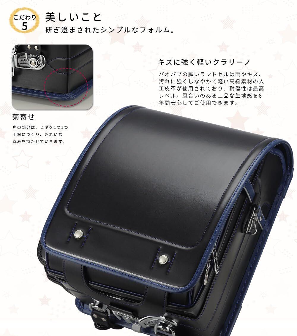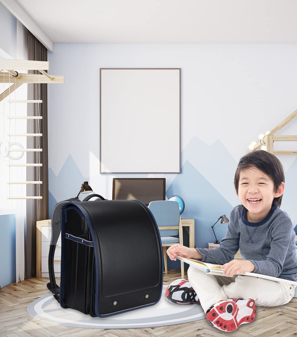 バオバブの願い 軽量 ランドセル 男の子 女の子 高級合皮 大容量 自動ロック 防水仕上げ schoolbag 通学 入学お祝い A4フラットファイル対応 小学生通学鞄 Bab-RnG58 (ブラック×ブルー)