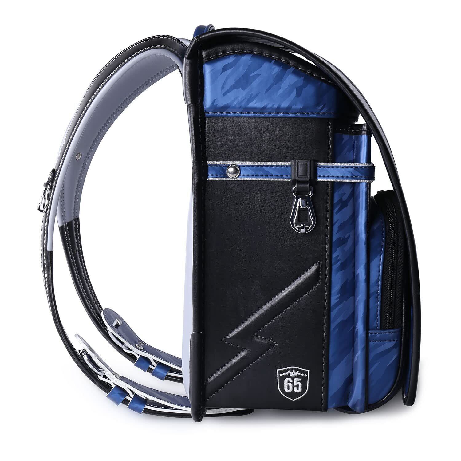 [Coulomb] クーロン ランドセル 男の子 小学生通学カバン カブセオリジナル迷彩柄 コントラスト配色 大容量A4フラットファイル対応 撥水加工 自動ロック 透明ランドセルカバー進呈 6年付き (ネイビー+ブラック)