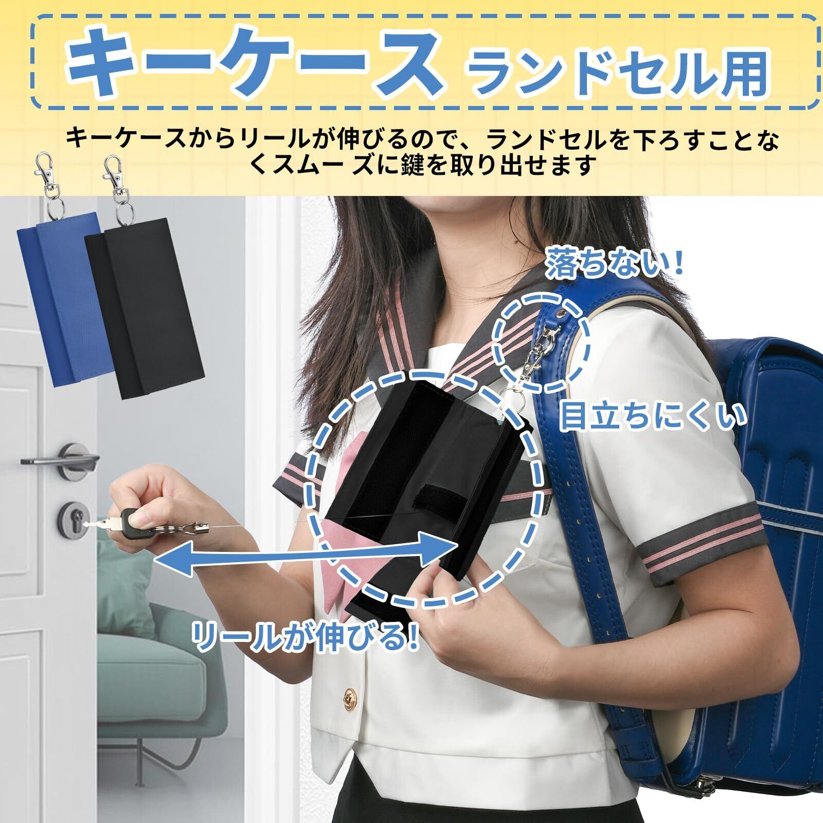 [wuernine] キーケース ランドセル用 リール付き 子供 男の子 女の子 小学生用 マジックテープ固定紛失防止 盗難防止 目立たない ランドセル肩ベルトに装着可能 可愛い 5色展開のオックスフォード布 キーを守る 登下校も安心