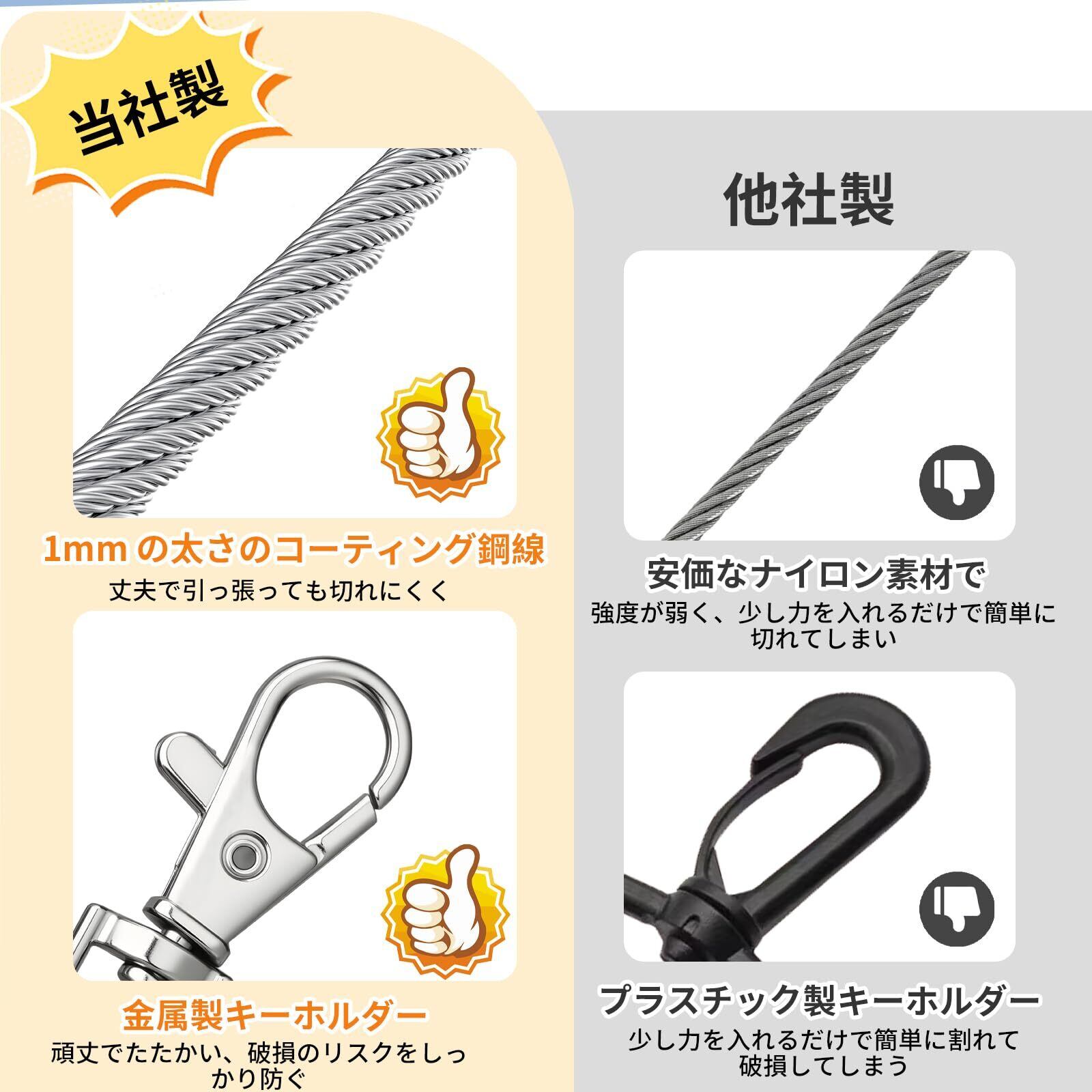 【55cmまで伸縮可能なリール式設計】伸縮可能なロープは最大 55cmまで延伸し、お子様の腕の長さにもしっかり対応、子どもでもカバンの肩ベルトに取り付けたまま、キーを簡単に取り出せます。広めの取り出し口で小さな手でも使いやすく、玄関前でもたつくことなく、施錠・解錠をスムーズに行うことができ、通学時の時間の無駄を防ぎます。伸縮後は自動的に元の位置に戻り、鍵の紛失を心配する必要がありません。