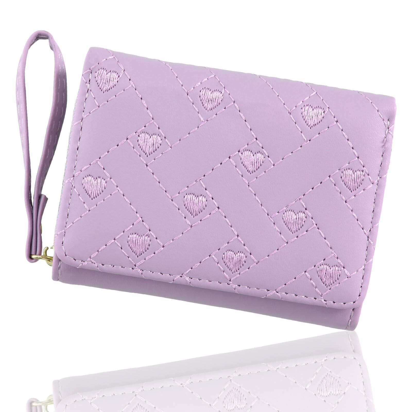 [PUREAMBER] 財布小学生女の子 子供用財布 女の子 レディース 三つ折り コンパクト ミニウォレット 小銭入れ ラウンドファスナー ストラップ付 (ライラック パープル)