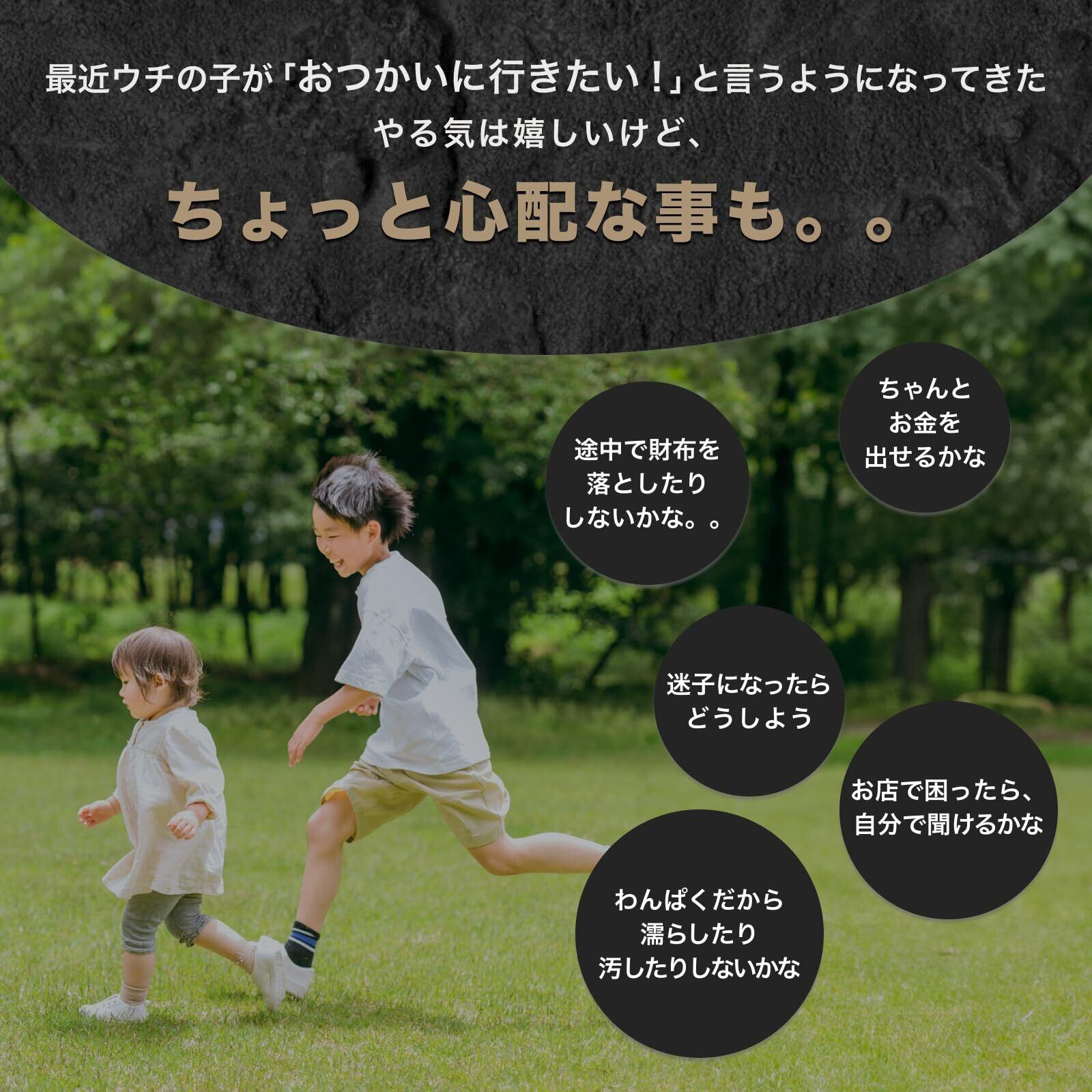 【人気商品】キッズ 財布 子ども ストラップ付 小学生 男の子 首掛け ひも付き 小銭入れ 二つ折り コインケース カード入れ おつかい (ブラック&ブルー)