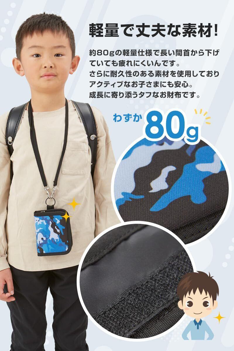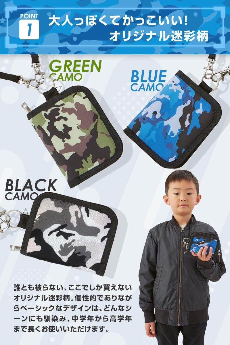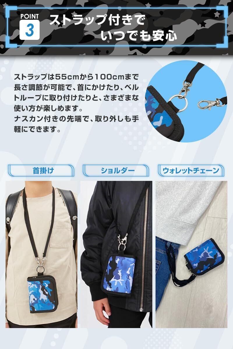 [sezu] 財布 子供 キッズ財布 男の子 迷彩 カモ柄 こども キッズ ウォレット 首かけ 小銭入れ ストラップ付き ネックストラップ かっこいい 小学生 誕生日 (ブラックカモ)