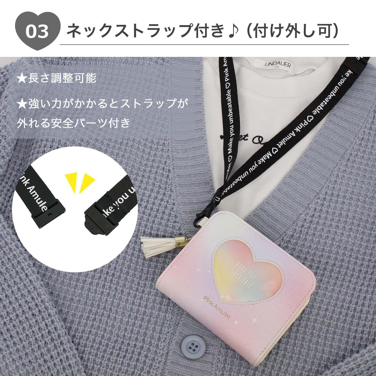[Pink Amulet] 財布 子供 女の子 キッズ 二つ折り 小学生 女子 小銭入れ ハート グラデ ネックストラップ付き ブルー 水色 青 ( ブルー&グリーン )