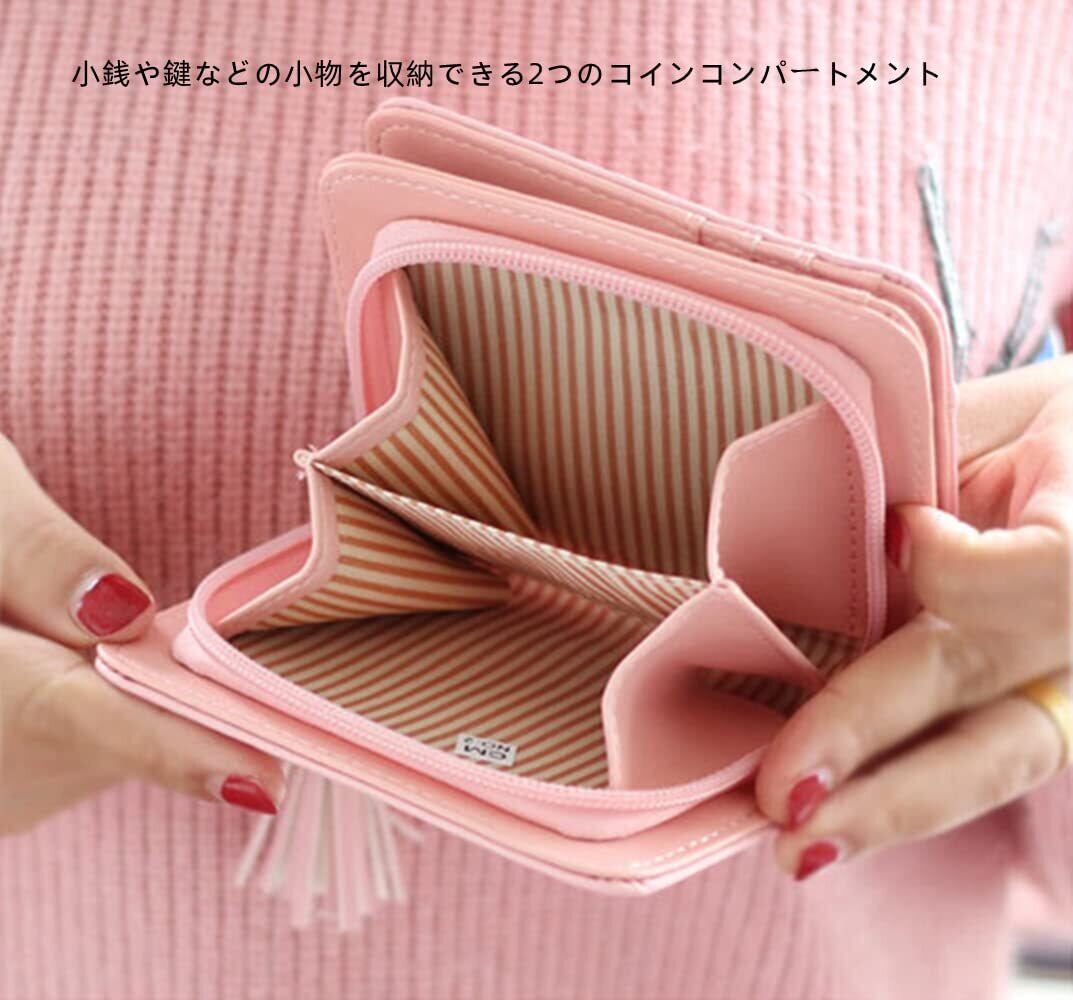 [Smomo] 財布 女の子 ミニ財布 かわいい レディース 短財布 二つ折り かわいい 猫チャーム タッセル付き カード入れ 小銭入れ 人気 子どもの日ギフト (パープル)