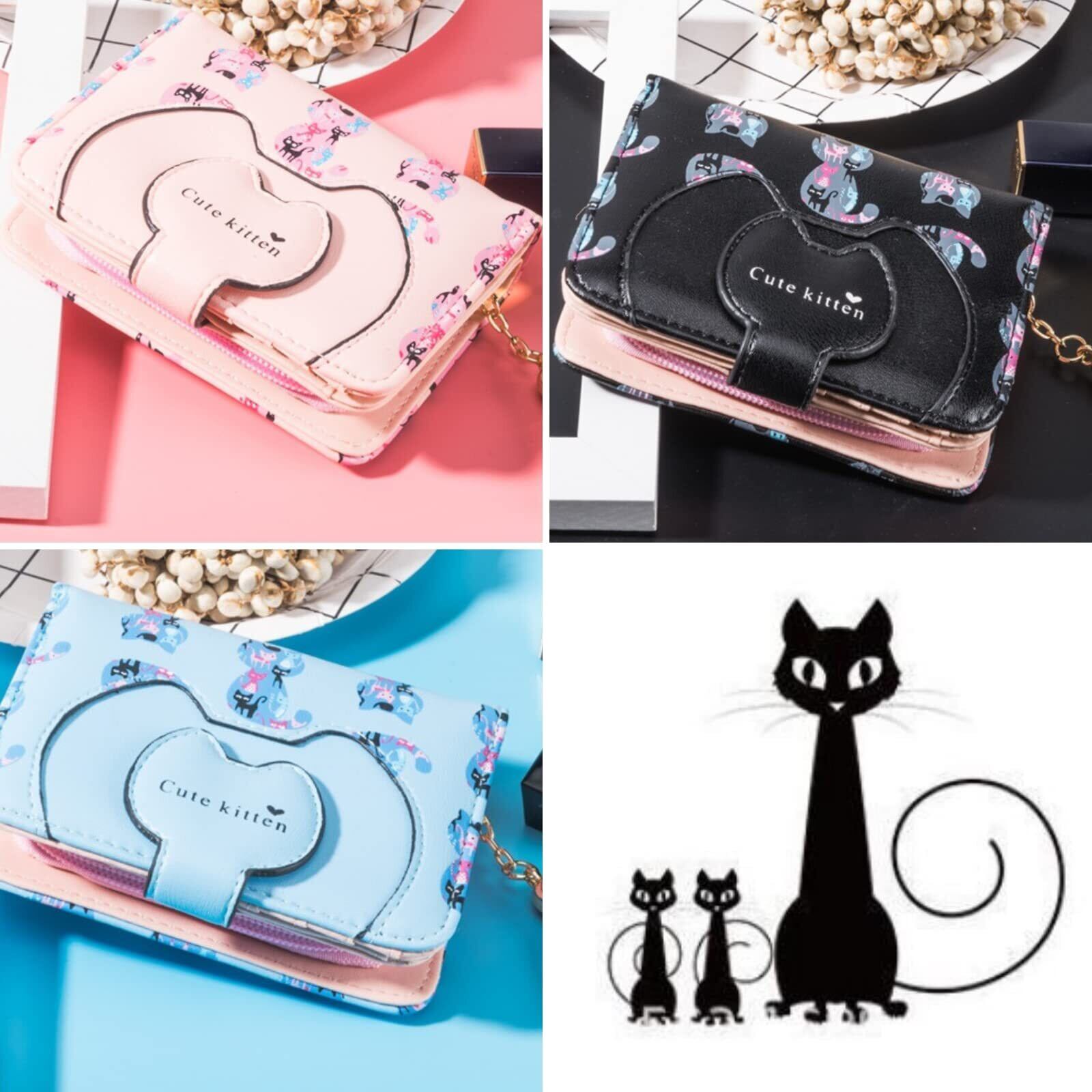 猫のデザインがキュートでかわいい 2つ折りタイプのおさいふが入荷しました ネコのシルエットの中にさらに数匹の猫ちゃんがいる他にはない、猫好きにはたまらないデザインです