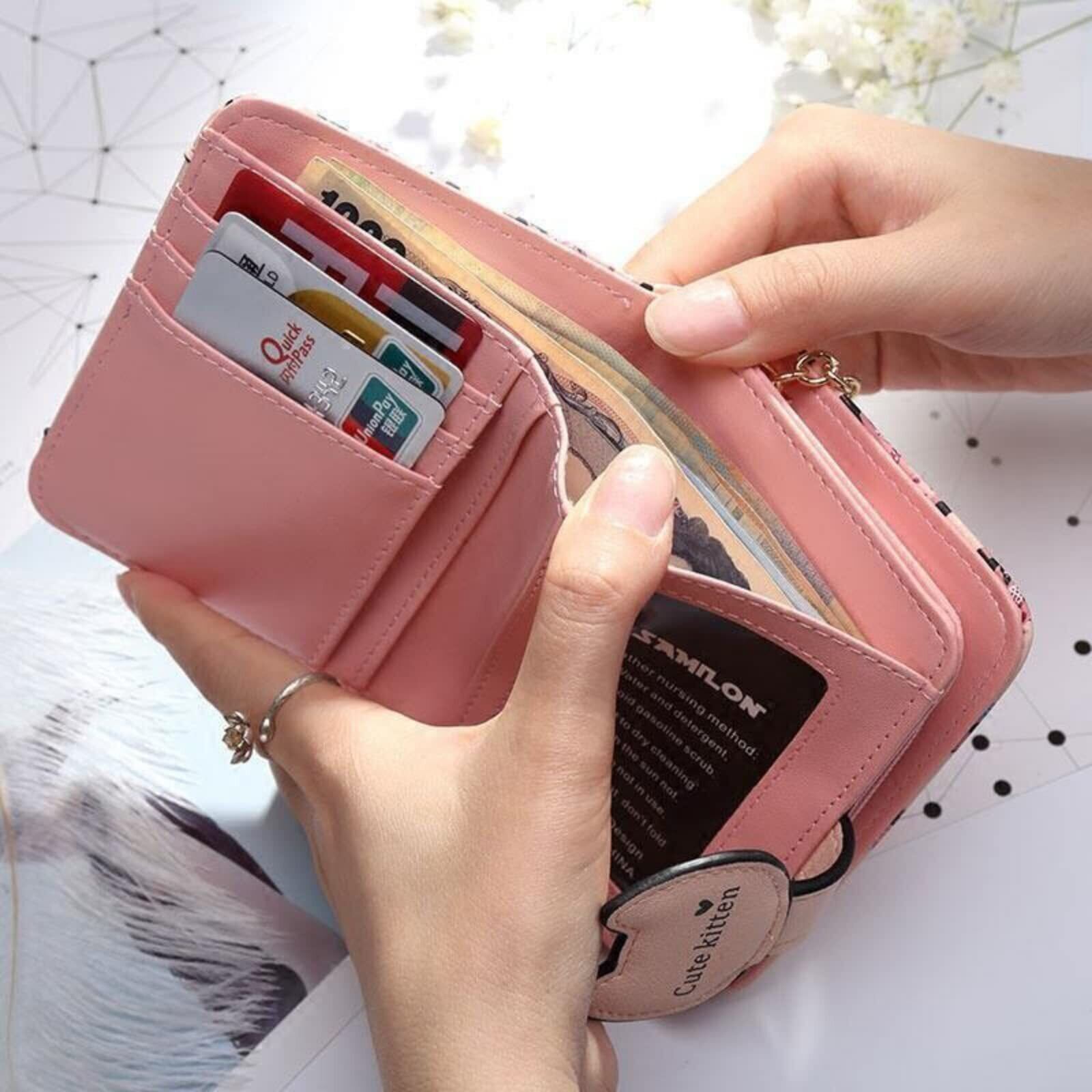 [ソユル]2つ折り 財布 おさいふ 猫 ねこ PUレザー 合皮 スナップ 留め ファスナー 開閉 タッセル 小学生 中学生 女の子 女子 女児 カジュアル (ピンク)