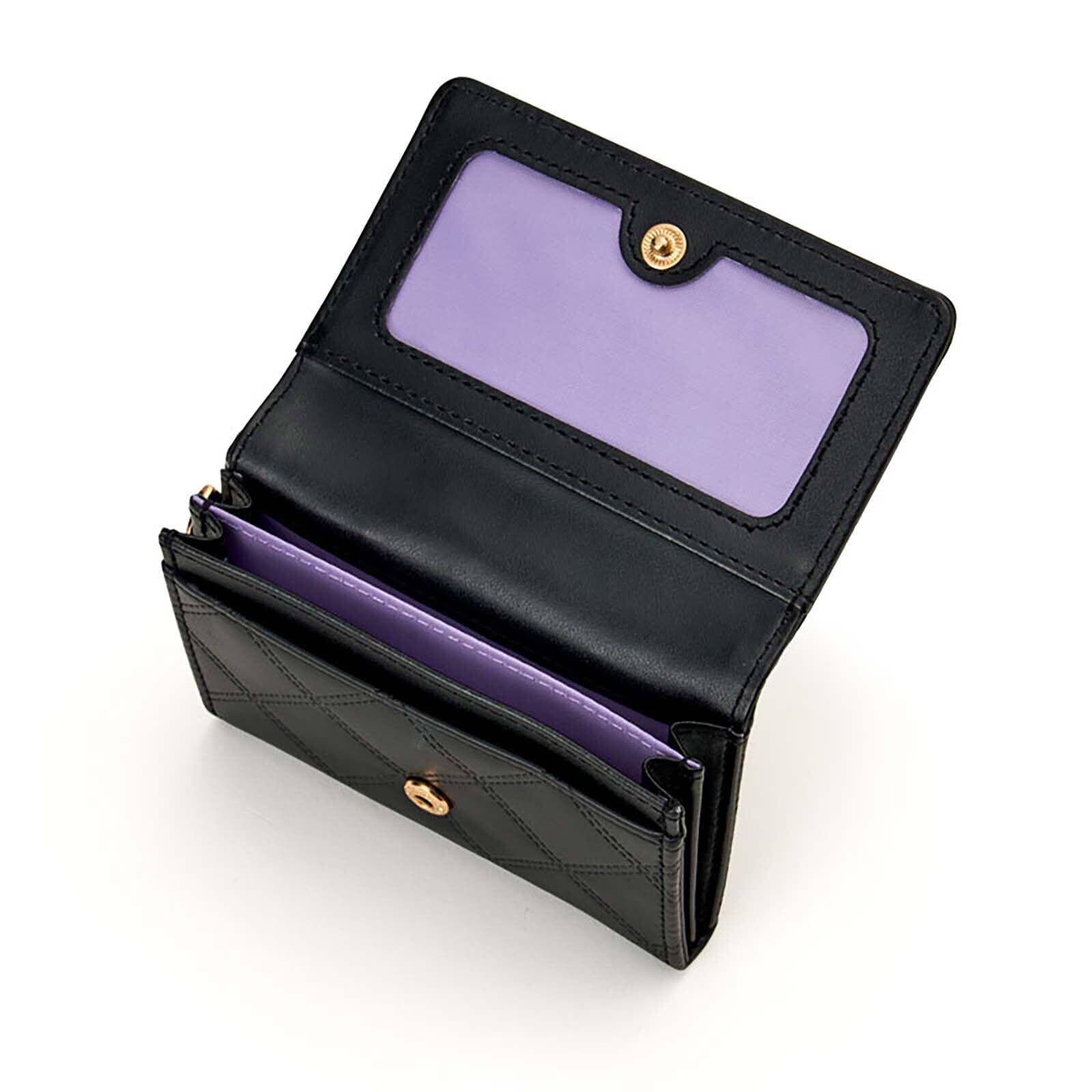 スナップボタン式開閉。オープンポケット1、仕切り1、透明窓カードポケット1(透明窓部分:約幅8.3×高さ3.8cm)。ストラップなどをつけられる金具付き。対象年齢3才以上。